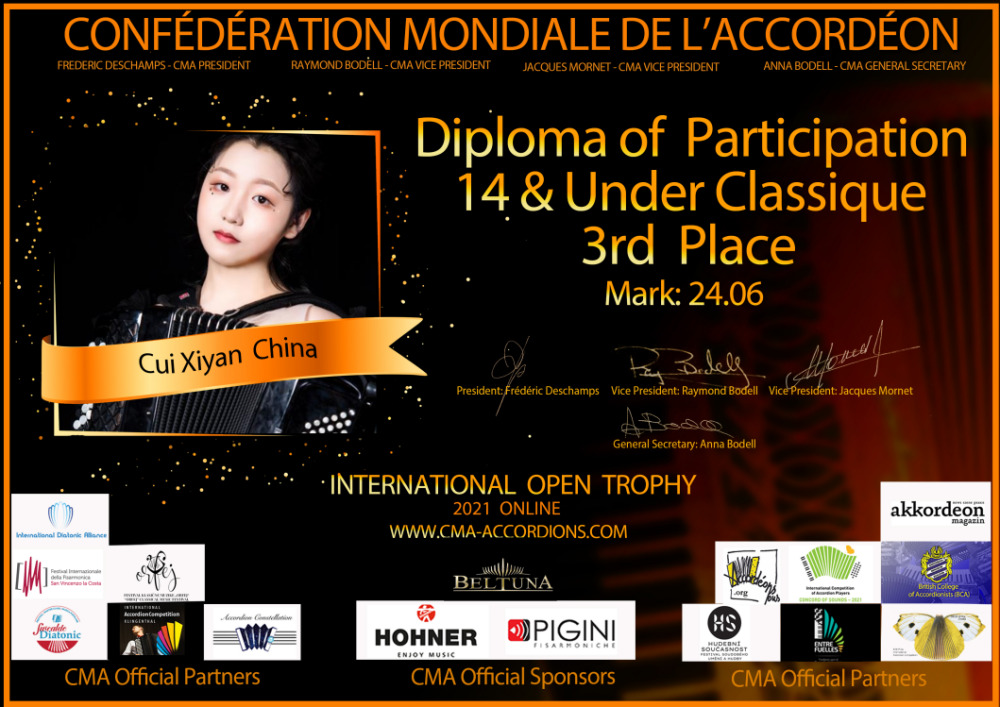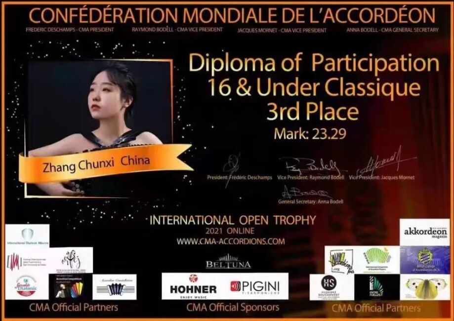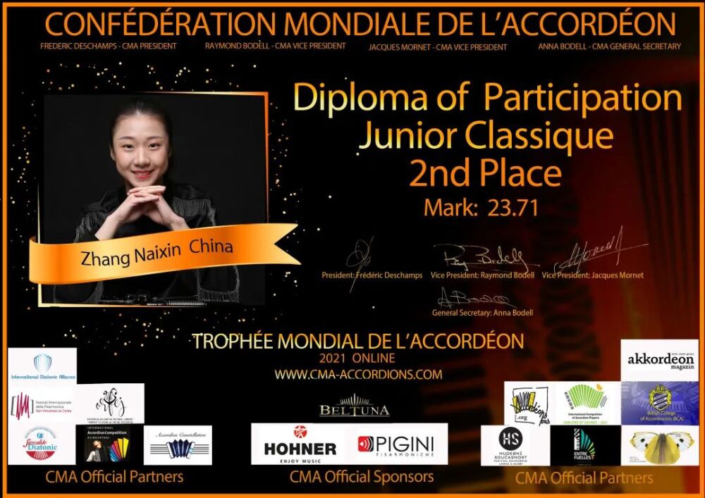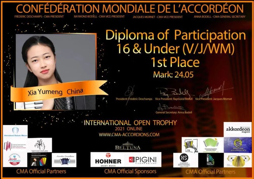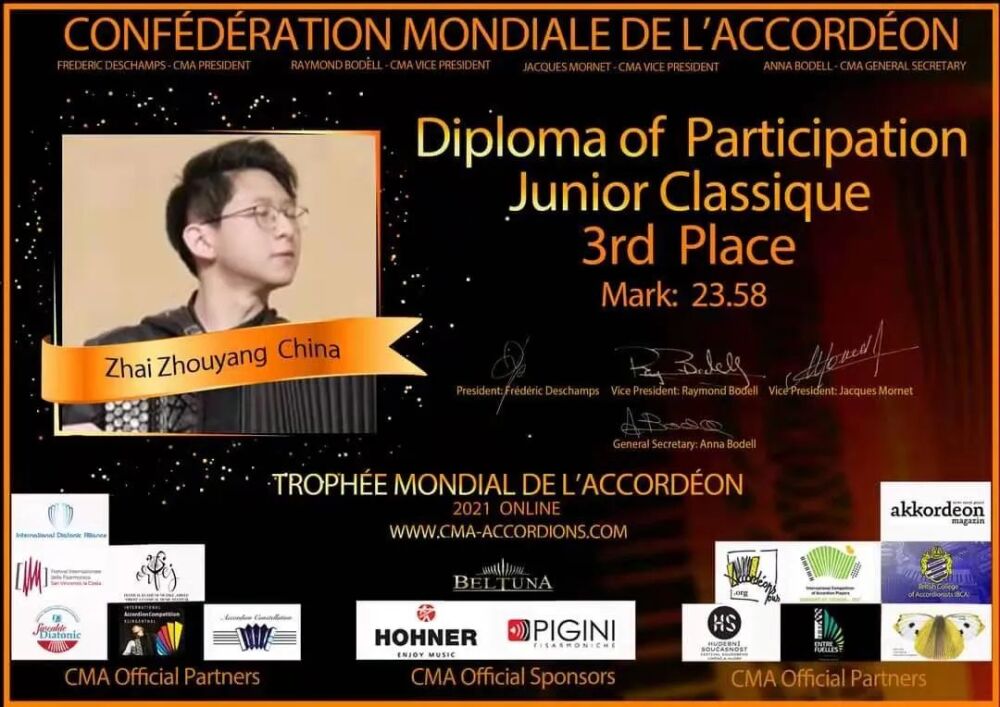 始于1951年的手风琴世锦赛是手风琴业界历史最为悠久也是国际上最为重要的赛事之一,由世界手风琴协会(la Confédération Mondiale de l’Accordéon)主办,每年会在不同的国家举办。由于新冠疫情,今年的比赛及音乐会活动继续在线上进行。从国内赛区选拔到国际赛区正式比赛,永利选手在此次比赛中都充分展现了自己的风采,得到国内外手风琴界的广泛认可和赞扬,为永利争得了荣誉。
