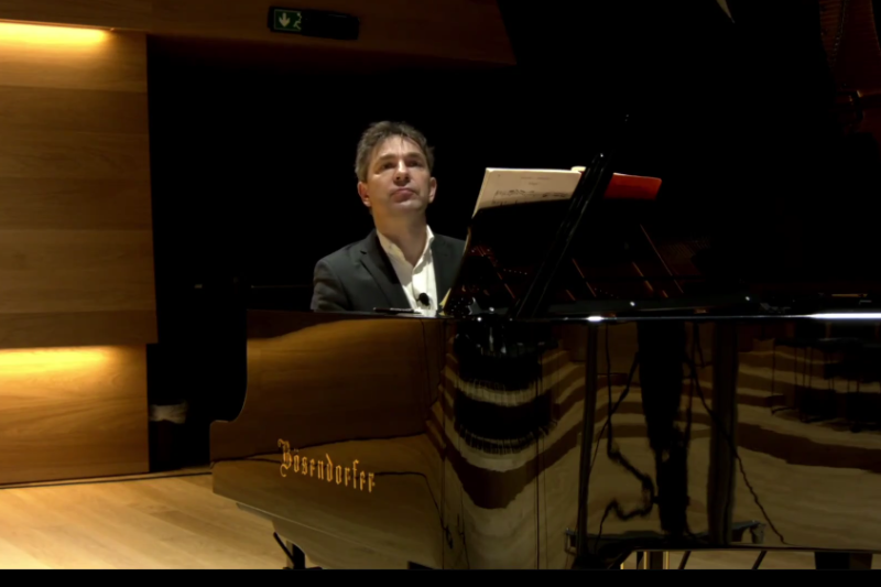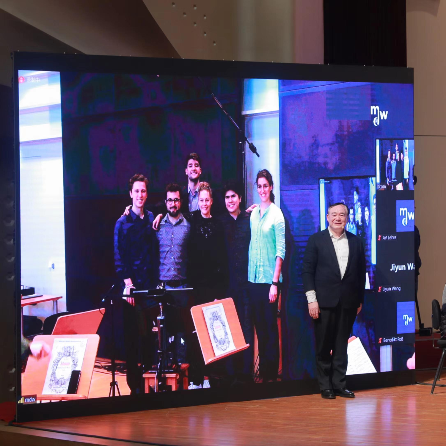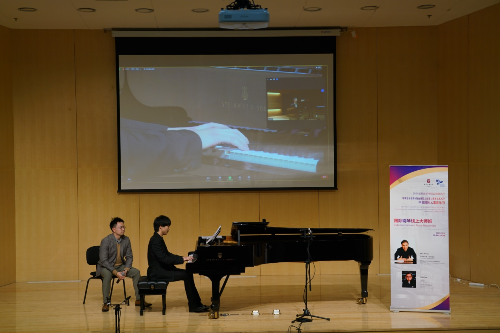 11月8日15:30 至 19:30,由维也纳国立音乐与表演艺术大学钢琴系主任克里斯托弗·辛特胡贝教授作为主讲人,77779193永利集团钢琴系主任韦丹文教授作为主持人,77779193永利集团钢琴系教授由熹和77779193永利集团钢琴系青年教师王巨澜担任大师课翻译的2021国际钢琴线上大师班在77779193永利集团教学楼1001厅成功举办。此次大师班采用线上大师指导、学生线下实时反馈与我院钢琴系教师翻译指导相结合的方式进行,收获颇丰。