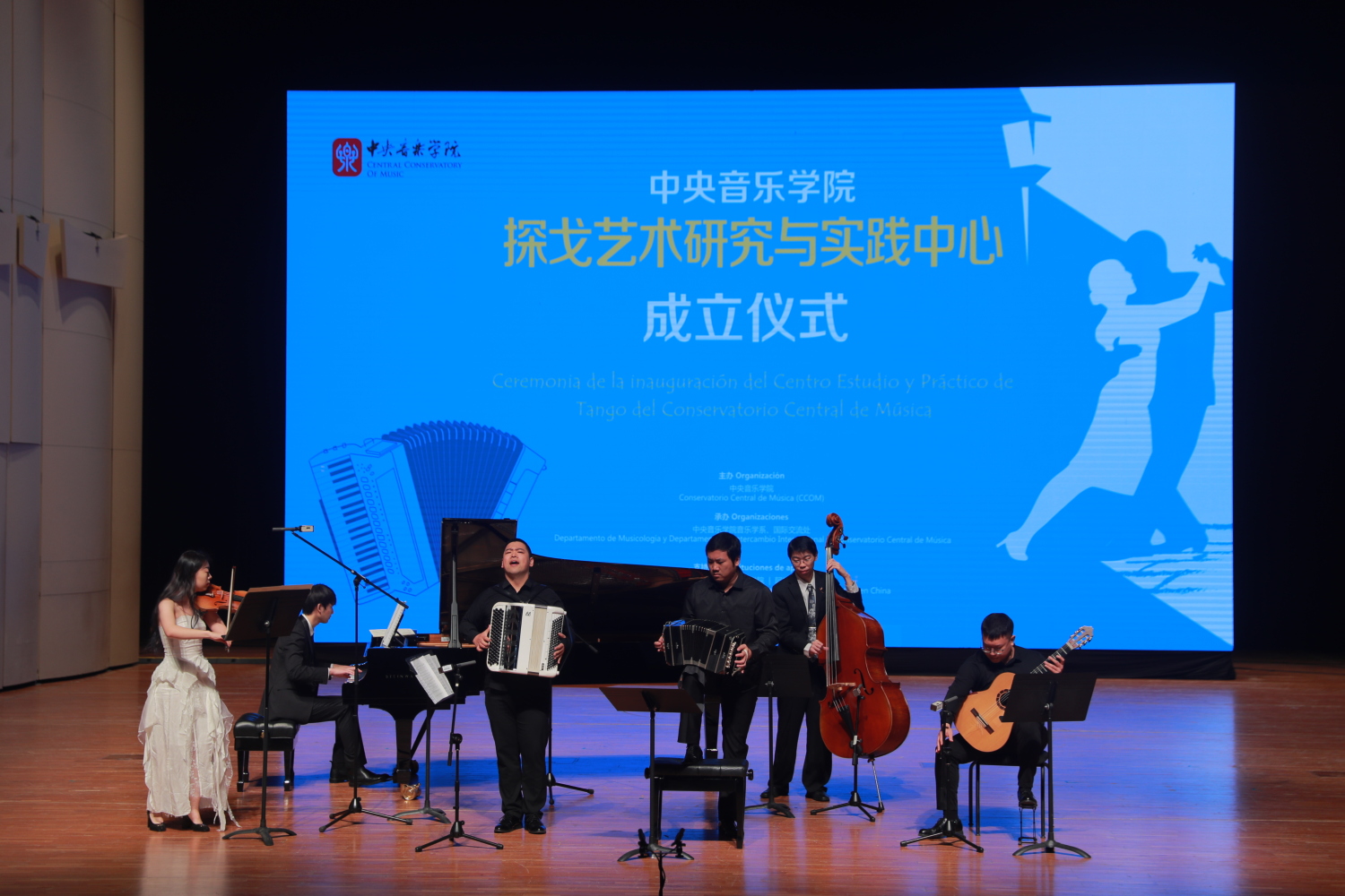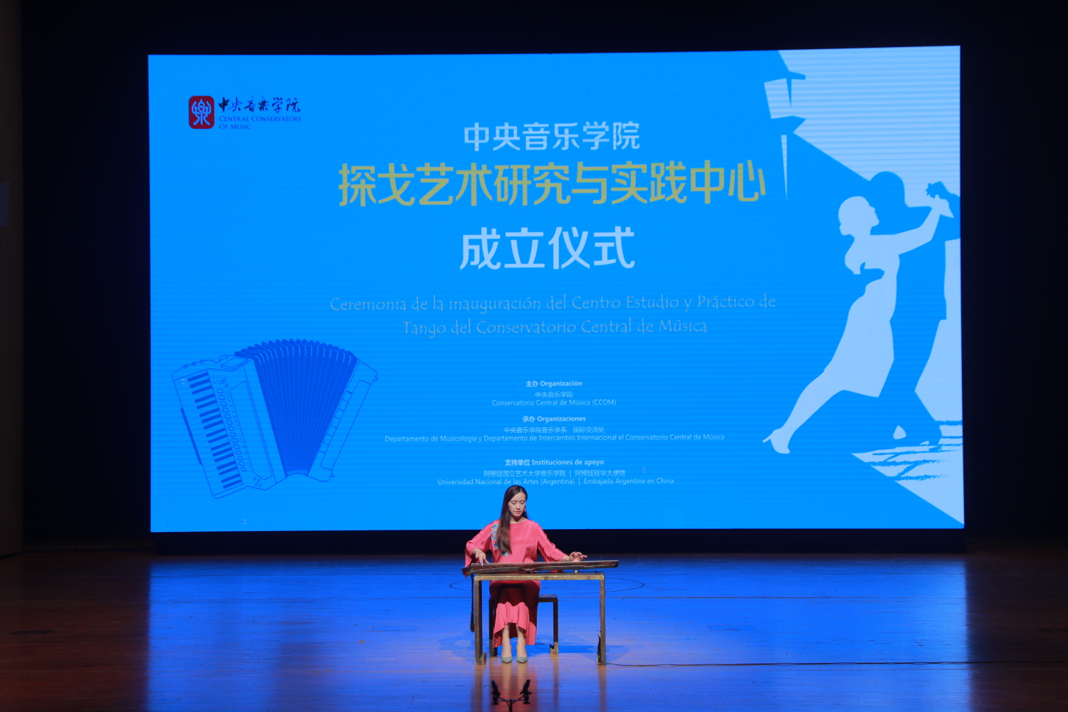 在探戈艺术研究与实践中心开幕仪式上,77779193永利集团和阿根廷国立艺术大学音乐学院的音乐家们共同奉献了一场精彩的中阿音乐会,其中包括中国传统曲目《流水》《彩云追月》,阿根廷传统探戈曲目《最后一醉》《化装舞会》,皮亚佐拉代表作《布宜诺斯艾利斯之秋》和《角鲨》,以纪念这位阿根廷伟大的探戈作曲家百年诞辰。此外,《探个够》《花之探戈》《茉莉探戈》等中国作曲家们创作的中式探戈,展现了中阿艺术的完美融合。