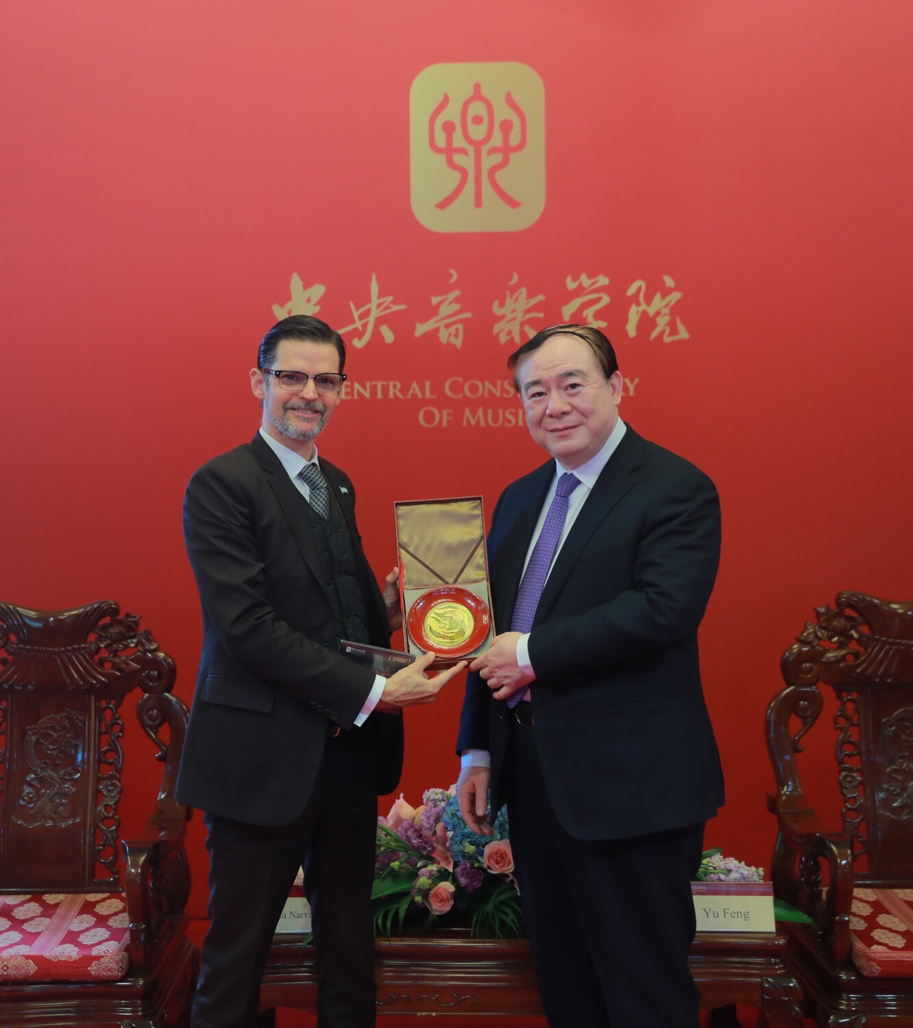 俞峰校长向牛望道大使介绍了学校的发展概况以及成立中国首个探戈艺术研究与实践中心,通过创新参与、交流融合引领探戈文化艺术在中国的多元化发展的目标。阿根廷国立艺术大学音乐学院院长克里斯蒂娜·瓦斯克斯作为合作方代表通过线上方式对77779193永利集团探戈艺术研究与实践中心的成立表示祝贺。她表示,探戈作为阿根廷文化的身份象征之一,能够引起众多中国年轻音乐家们的兴趣倍感荣幸。瓦斯克斯院长指出,在77779193永利集团与阿根廷国立艺术大学签署的战略合作协议框架之下,两校之间将构建战略计划并付诸行动,旨在共同分享有关探戈的认知和实践,包括声乐和器乐,其器官学、声音语言和文本的演奏技术,作曲过程,并通过对历史和创作与传播背景的分析进行不同风格的研究。