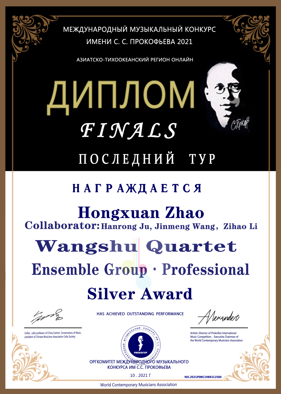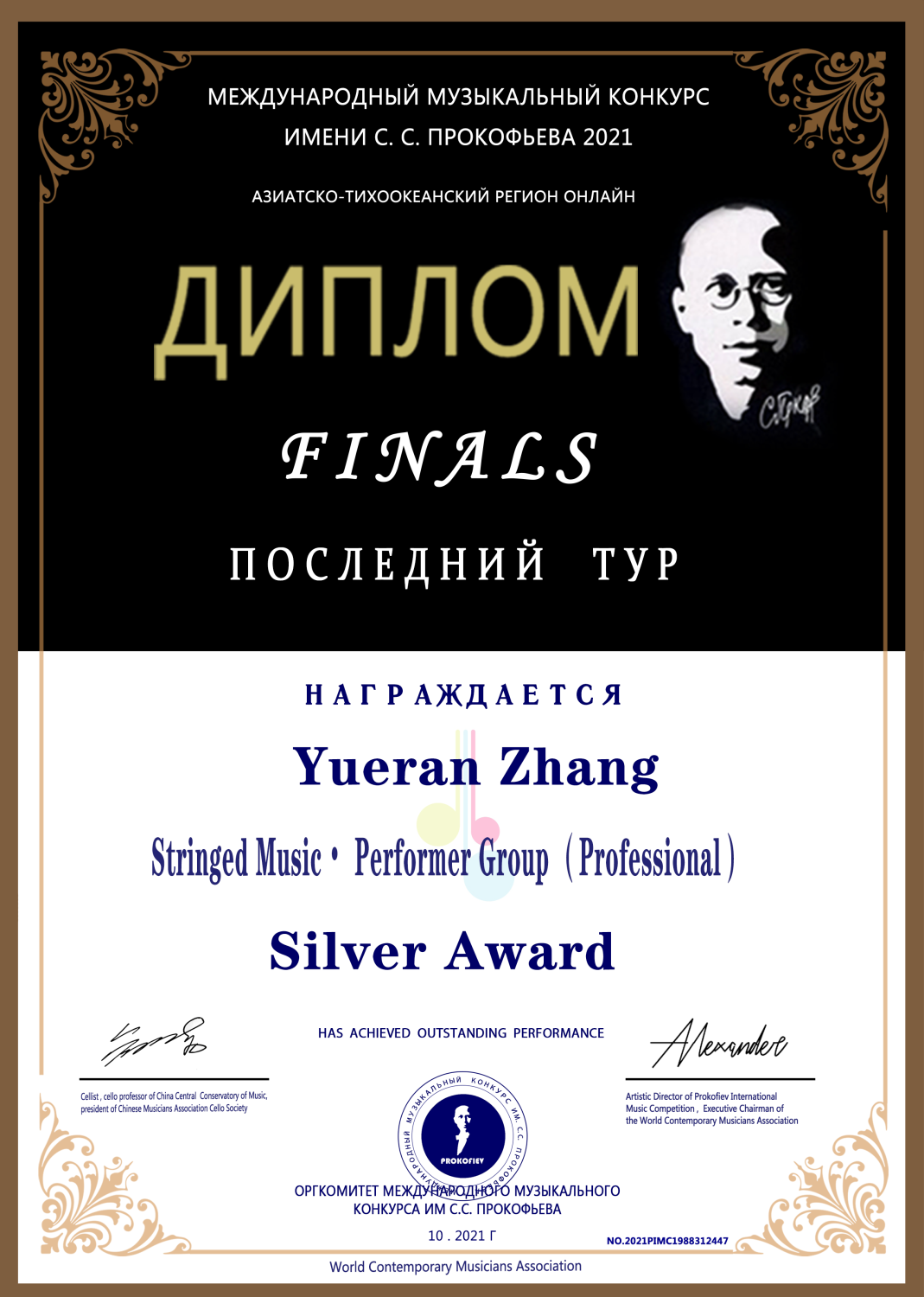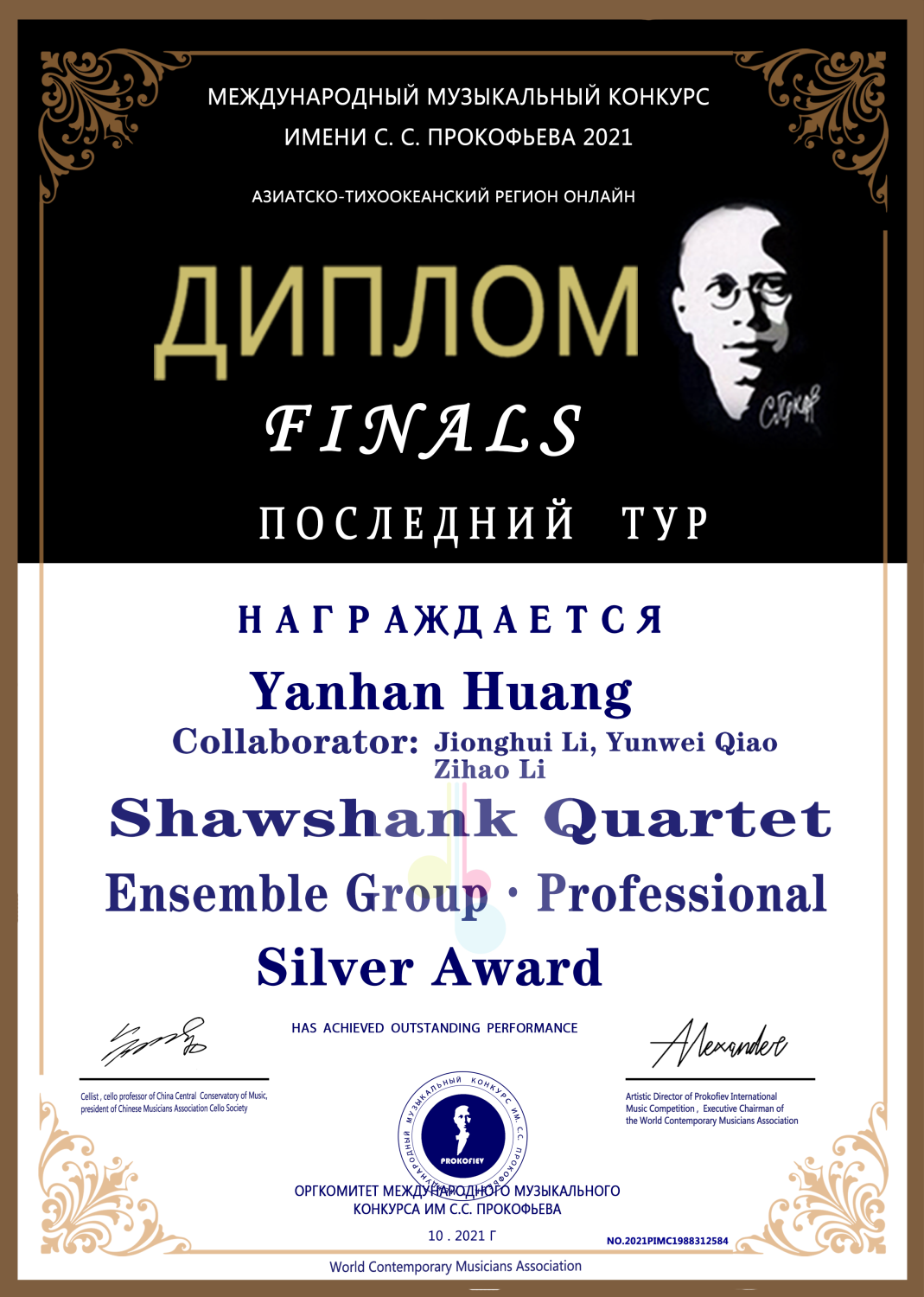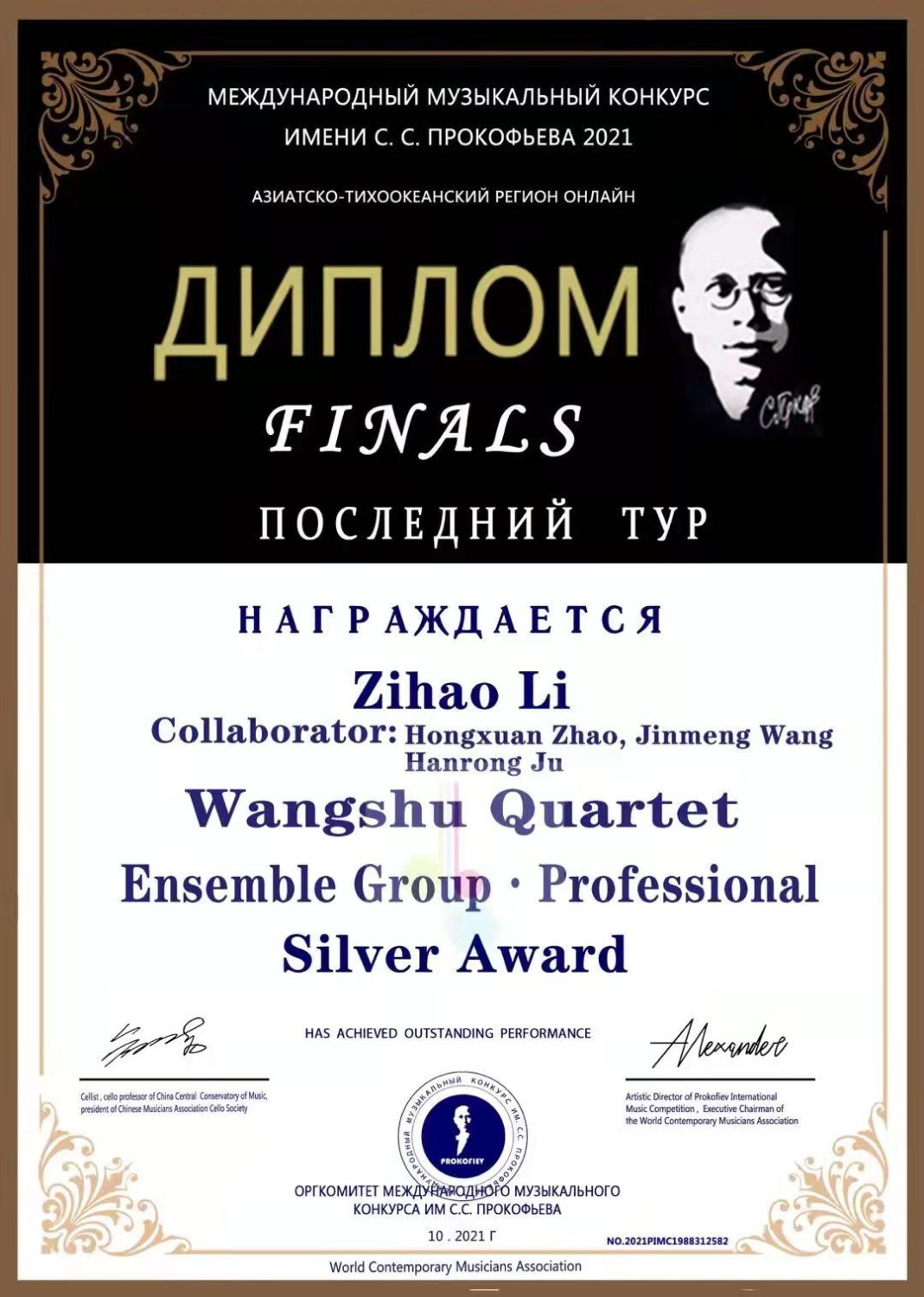 2021年获得普罗科菲耶夫国际音乐大赛亚太区弦乐第二名