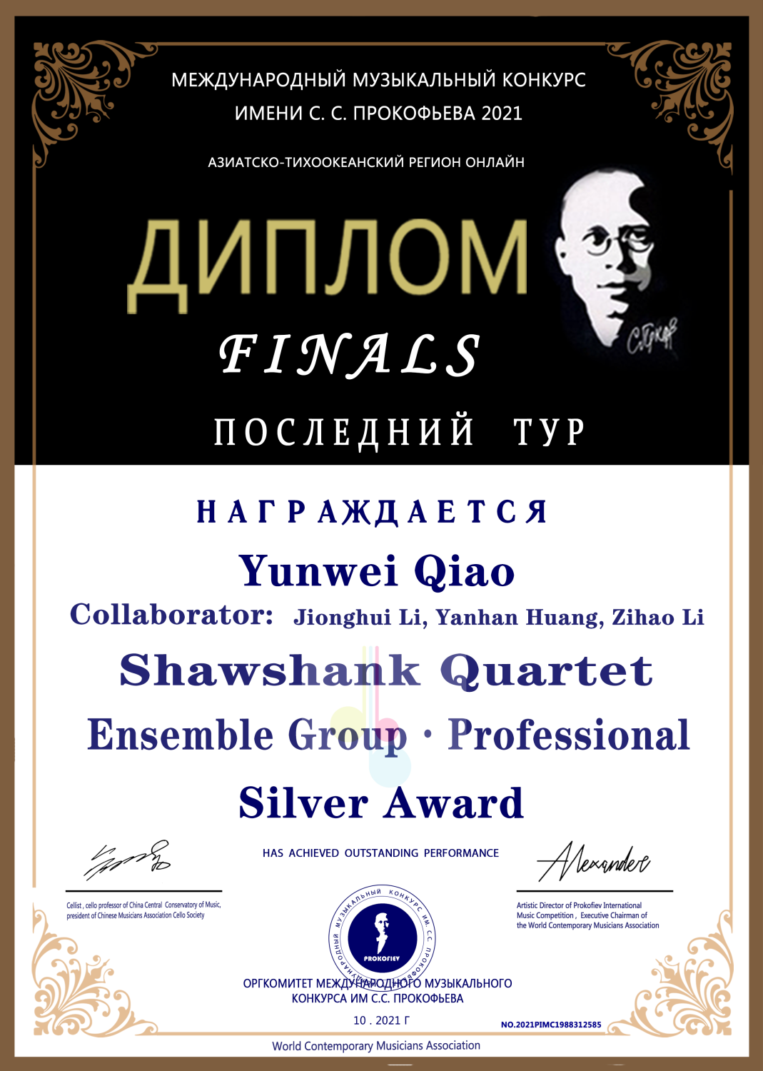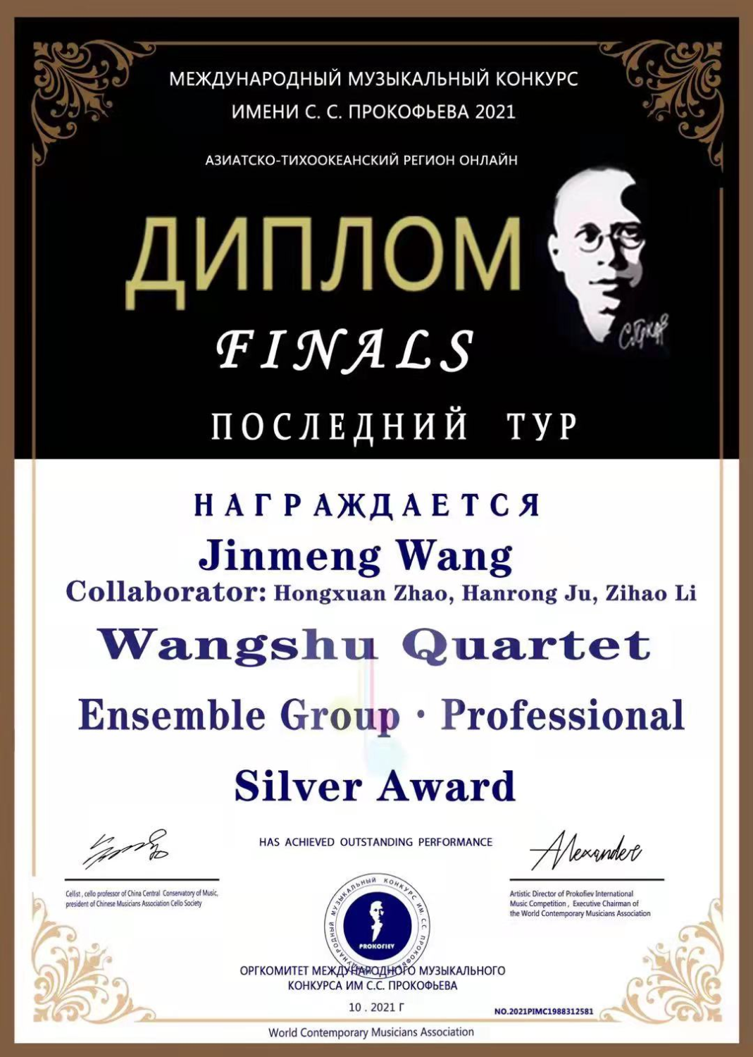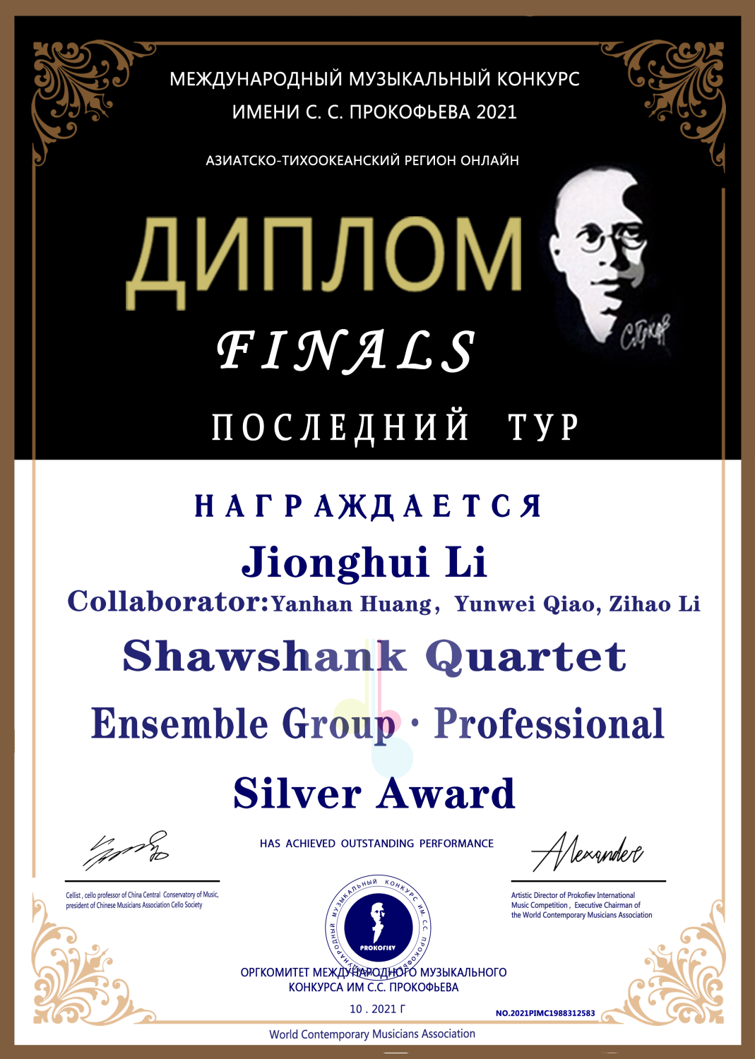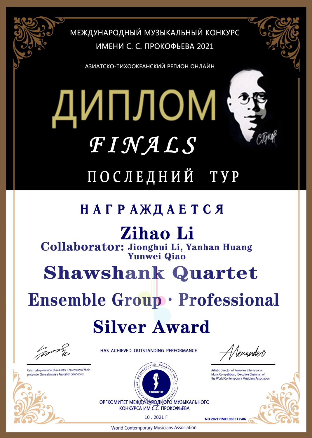 2021年获得普罗科菲耶夫国际音乐大赛亚太区弦乐第二名
