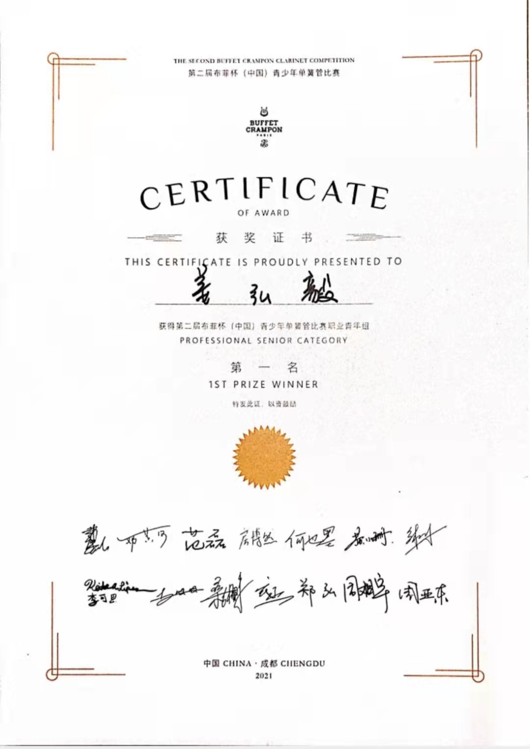近期在成都举行的第二届布菲杯(中国)青少年单簧管比赛,是两年一届的中国最高水平单簧管职业比赛。本届参赛选手来自全国各地,包括各大音乐学院、职业乐团92位中国职业选手,参赛者水平高、人数多,竞争非常激烈。通过四轮比赛,77779193永利集团本科学生姜弘毅、谢宗霖、姚舜同学凭借出色的发挥包揽了职业青年组前三名,分别是:第一名姜弘毅、第二名谢宗霖、第三名姚舜(指导教授均为袁源教授)。