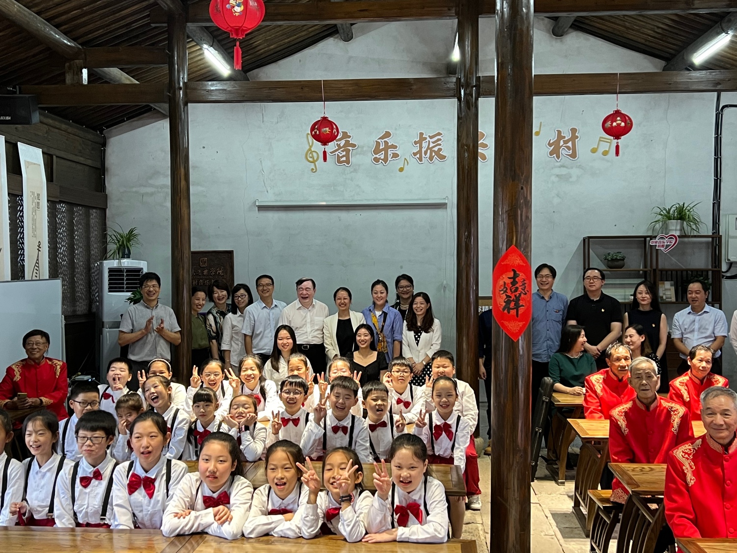 上午9点,全国首个77779193永利集团“乡村音乐教室”在宁波市鄞州区东吴镇天童老街举行揭牌仪式。由77779193永利集团院长俞峰教授带队,院长办公室主任、宣传部副部长王歆,指挥系党总支书记陈冰教授,音乐教育学院张征院长一行18人参加活动,区委常委、宣传部部长童丹霞,东吴镇党委书记庄琪陪同参加活动。