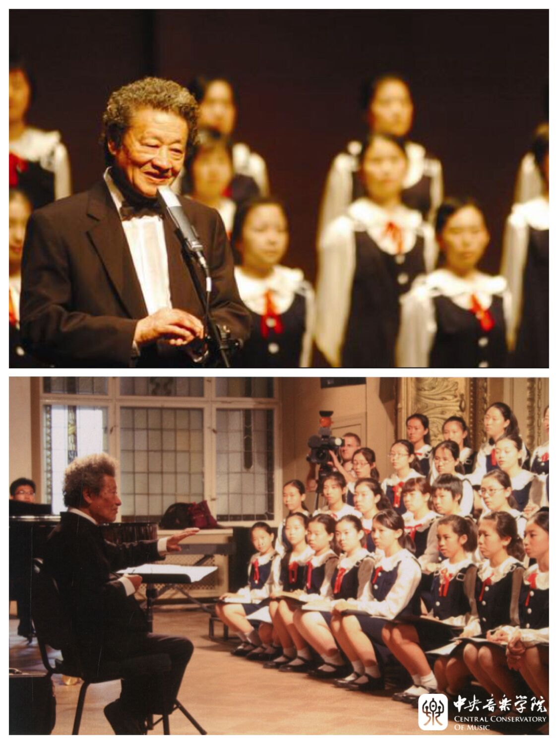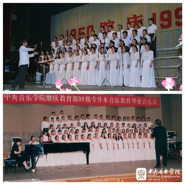 下,2001年杨鸿年指挥学校继续教育部学生演唱。