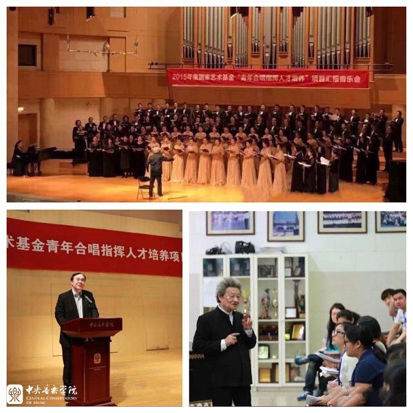 2016年杨鸿年负责主持国家艺术基金2015年度艺术人才资助项目“青年合唱指挥人才培养”项目。下左,俞峰校长在项目启动仪式上讲话。