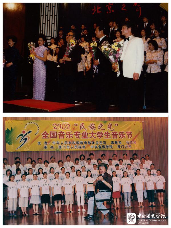 下,2002年杨鸿年在“民族之光”全国音乐专业大学生音乐节上进行排练。