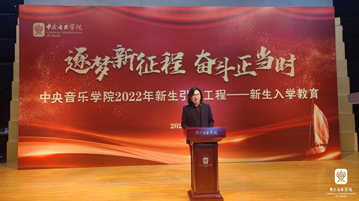 9月9日下午,校党委书记赵旻为2022级全体新生现场讲授开学第一课,围绕“我是谁”“我要成为谁”这两个问题给新生以教育启发,为央音青年指明奋斗方向。