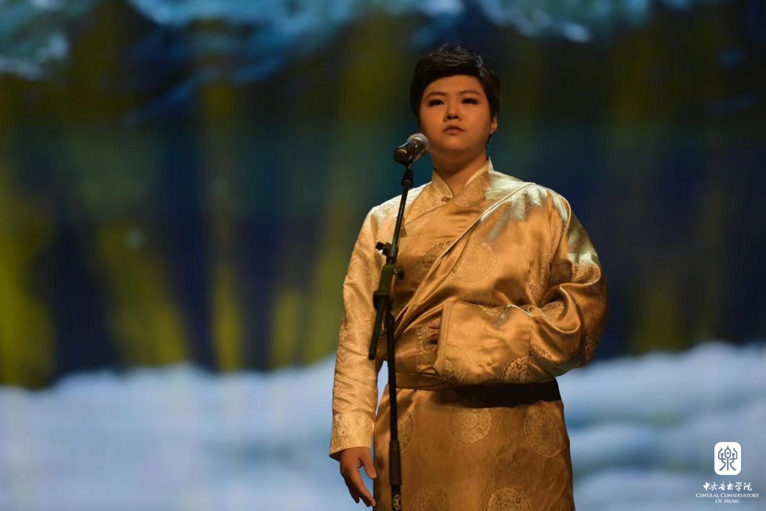 在拉萨还进行了全程直播的专场演出。在高海拔缺氧环境演唱,对我来说还是第一次。前一天彩排时就感到吸不上气,声音传送时阻力很大,一运气发声就会头疼。最终,凭借着意志力,我坚持了下来,演出圆满成功。这是央音精神与对艺术舞台的敬畏信念去支撑着每一位参与演奏演唱的文艺宣讲师,在高原发出最强音。