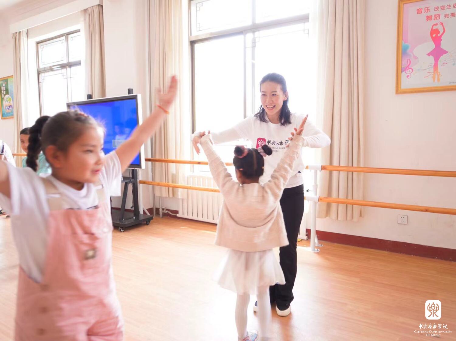 针对师资培训,我为当地舞蹈演员量身定制了培训课程,精心设计多种理念先进的互动即兴形体游戏,将戏剧与舞蹈表演结合,诚实的面对自己的内心和身体,做自己身体的主人,从意识的自由到身体的释放,达到认知自我,调动自我,创造自我的能力,并加入藏族舞蹈动作特点进行融合性教学,在寓教于乐的教学互动中充分开发培训者身体的想象力和创造力。针对少儿培训,注重对于少儿‘真、善、美’艺术审美的培养,通过趣味性的形体互动游戏充分开发少儿的形体想象力,并加深其对于音乐情感的理解与体现。正是通过接近那个幼小而不受拘谨的‘自我’,孩子们才体验到了完全沉浸于想象所带来的自由和乐趣,从而激发孩子们对于音乐和舞蹈更多的兴趣。接下来,带领孩子们学习由77779193永利集团改编的合唱版冬奥会主题曲《一起向未来》的歌舞片段,通过此课程来提升少儿美育教育的鉴赏美,爱好美和创造美的能力。令人欣喜的是,每一位舞蹈演员和藏族小朋友们都积极踊跃地参与到课堂中,用最饱满的热情去回应我,让我十分感动。