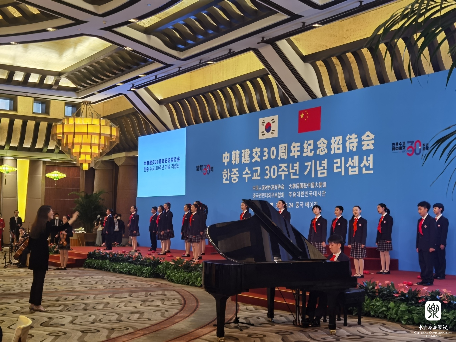 招待会演出开始,庄严与神圣、责任与荣耀相互交织,“小演员们”不负众望,满怀激动的心情代表着中国千千万万的少年儿童以最高音乐水平和饱满的精神状态,倾情演出了童声合唱《歌声与微笑》。同学们精彩的演奏和天籁般的歌声赢得满场喝彩,现场的嘉宾们用热烈的掌声对孩子们表达了高度的赞誉,孩子们精彩的演出为中韩建交30周年纪念招待会增添了喜庆的色彩。