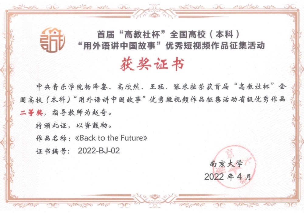 近日,首届“高教社杯”高等学校(本科院校)“用外语讲中国故事”优秀短视频作品征集活动公布获奖名单,永利学生团队作品“Back to the Future”经过数轮角逐,获得北京赛区二等奖(第二名)。