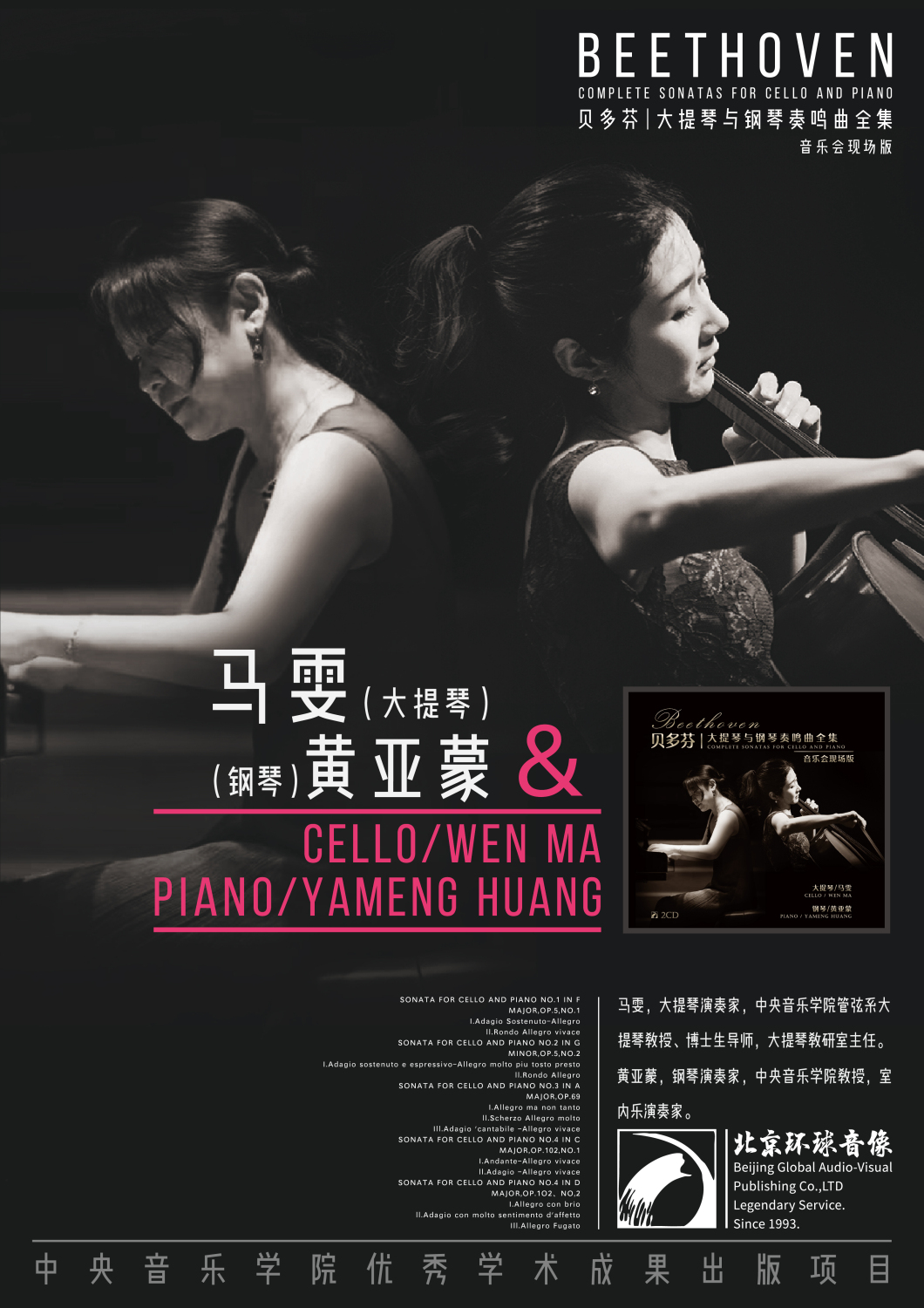 近日,永利管弦系大提琴教授、博士生导师、大提琴教研室主任马雯与钢琴系教授、著名演奏家黄亚蒙的全新双CD专辑《贝多芬大提琴与钢琴奏鸣曲全集》,由永利下属单位——北京环球音像出版有限公司出版发行。