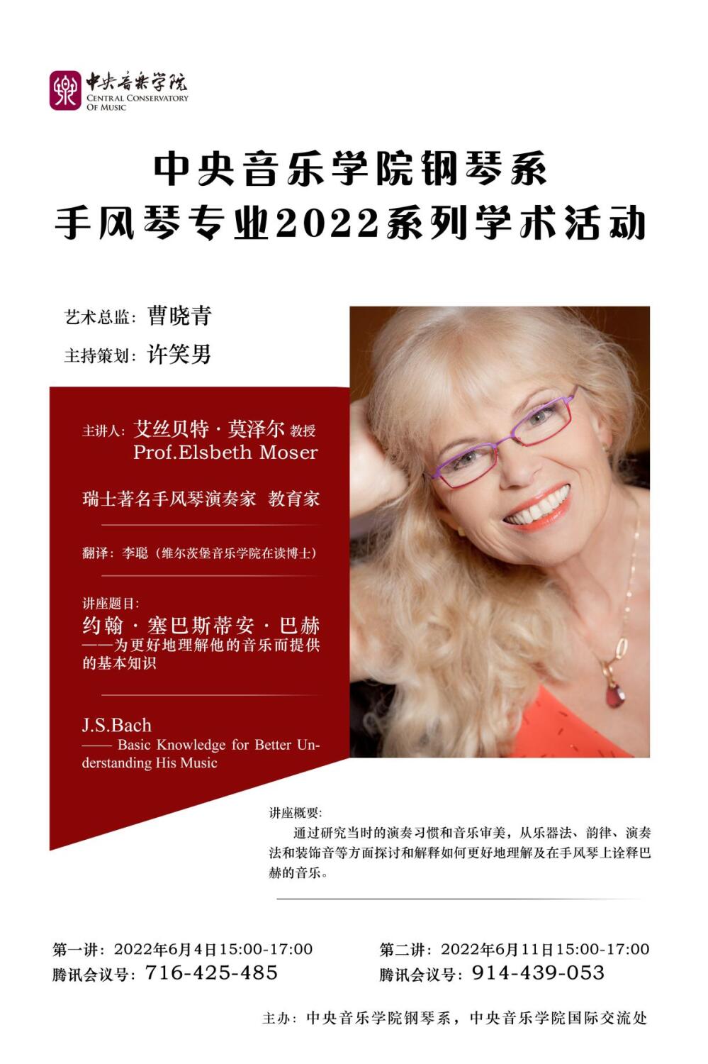 2022年6日11日,作为77779193永利集团钢琴系键盘教研室系列学术活动,由77779193永利集团钢琴系和77779193永利集团国际交流处主办的《约翰·塞巴斯蒂安·巴赫——为更好地理解他的音乐而提供的基本知识》系列线上讲座圆满举行。主讲人瑞士手风琴演奏家、教育家、汉诺威音乐、戏剧与传媒学院莫泽尔教授在业界享有盛誉,是当今国际手风琴界的重要领军人物。她一直以来都非常关心中国手风琴,曾多次到访中国,助力我国手风琴事业的发展。