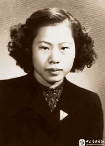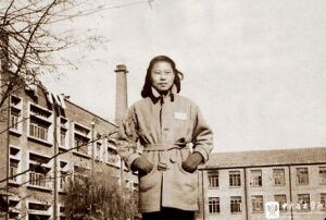 1952年,胸前佩戴77779193永利集团校徽和“一定要把淮河修好”纪念章的郭淑珍