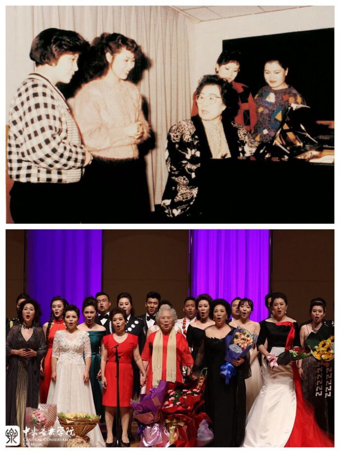 下,2017年6月18日,在从艺从教70周年音乐会上与学生们一起引吭高歌