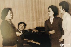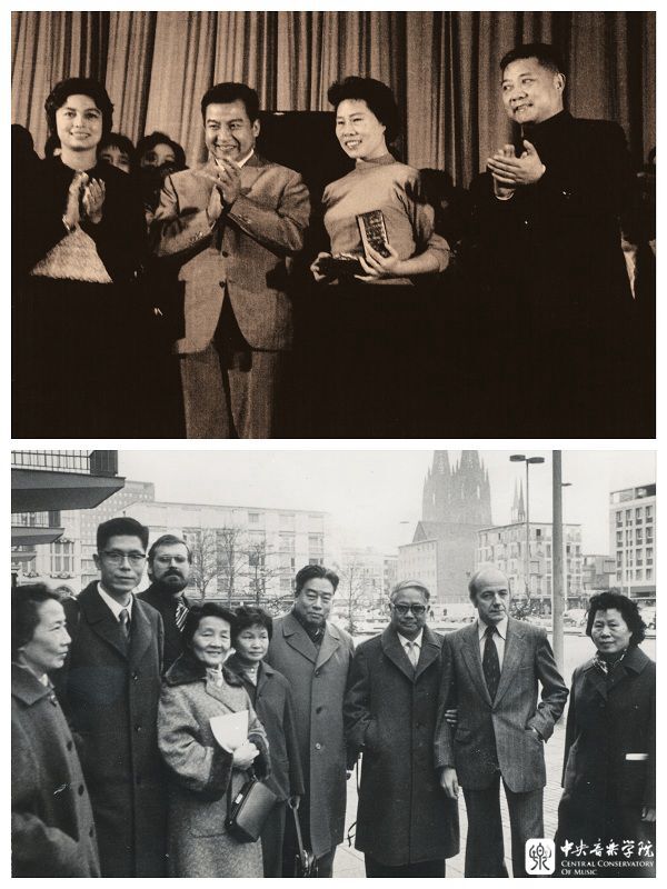 下,1978年,郭淑珍(右1)跟随由赵沨院长率领的中国音乐家代表团访问联邦德国