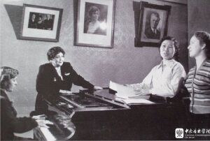 1955年,郭淑珍(右2)在卡杜里斯卡娅教授(左2)的教室上声乐课