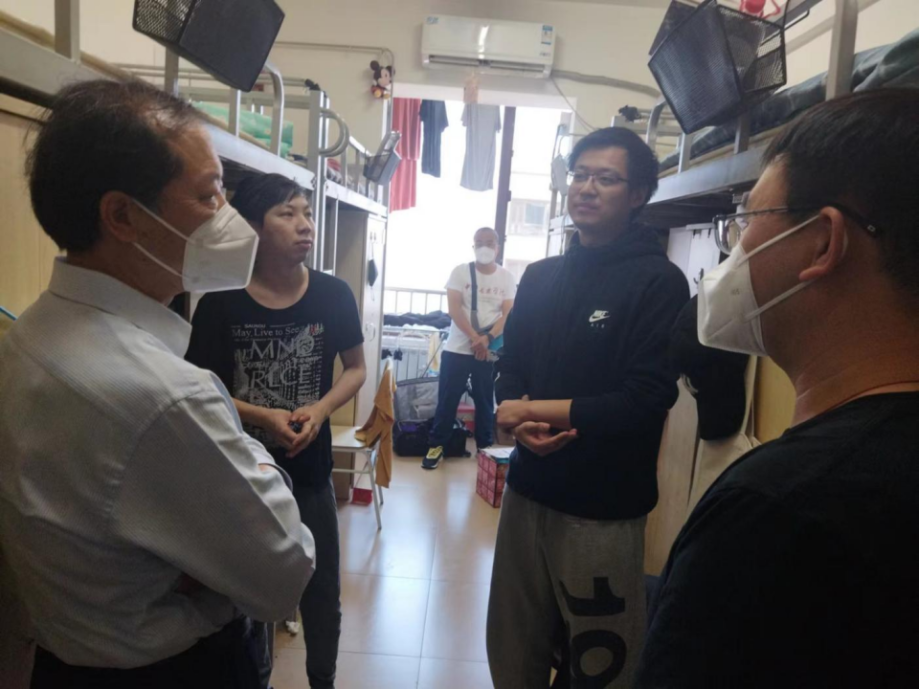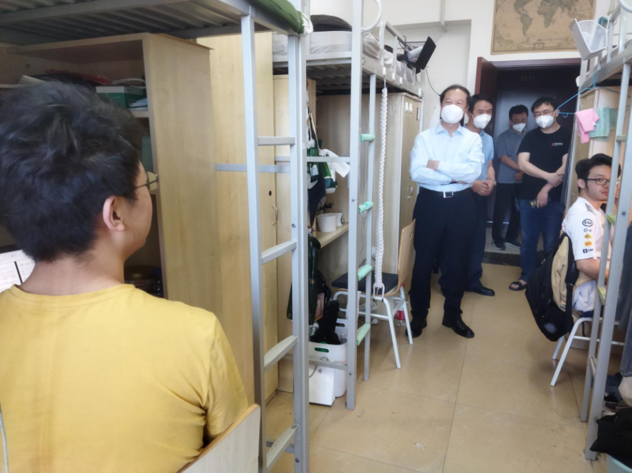 赵旻书记一行深入学生宿舍,全面了解当前在公寓居住的1000多名学生的线上学习、返乡计划、毕业就业及思想状况。
