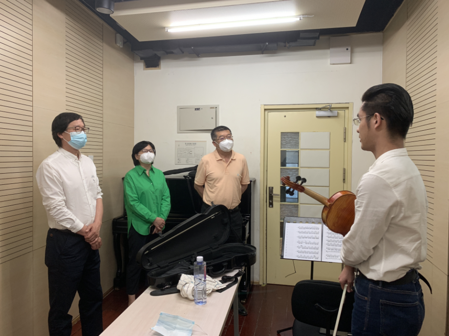 秦文琛副校长在党委办公室赵晓岩主任、教务处汤琼处长的陪同下,深入教学楼、琴房楼、图书馆看望了同学们,并与同学们亲切交谈。同学们对学校的学习环境和生活条件表示很满意,他们表示校园封闭管理可以有更多的时间用来练琴,是提升专业水平的好机会。有同学提出了琴点不够用的问题,秦文琛副校长也给予了回复。他鼓励同学们要以乐观的心态面对疫情,度过充实的校园时光。