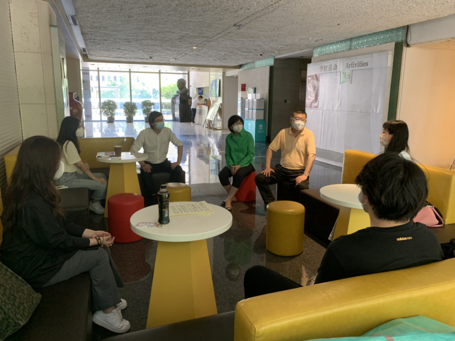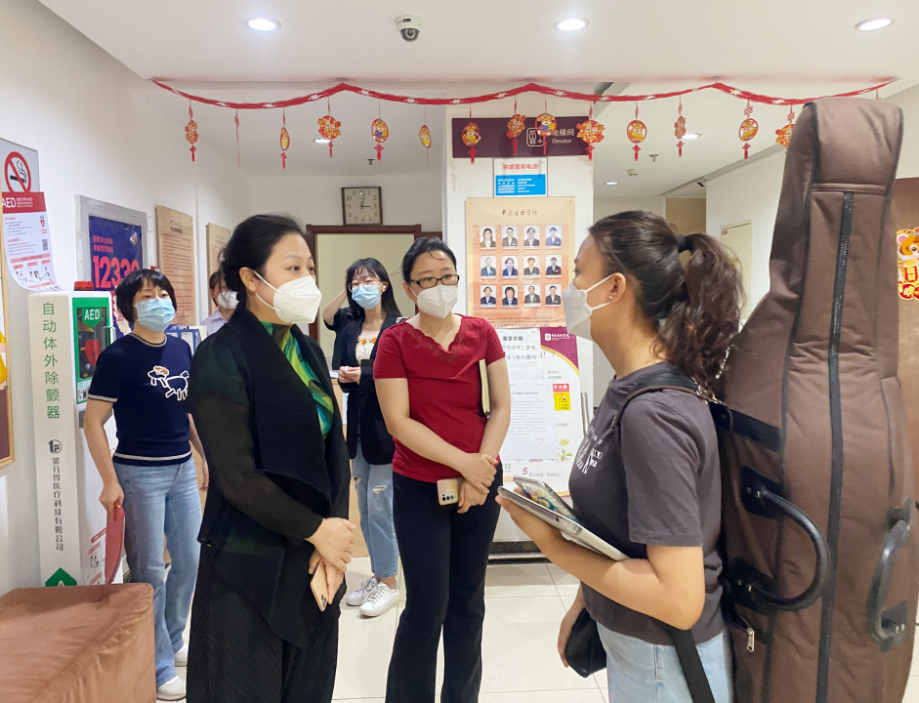院长办公室主任王歆、学生工作部副部长叶冬梅与辅导员王雅洁走访了女生宿舍。老师们以聊家常的方式,对同学们学习、生活、返乡、实习、就业等各项情况进行了深入了解,传达了校领导的关心和关爱。在龢空间,王歆主任建议音乐治疗专业的学生发挥自身专业优势,对封闭管理中的师生开展音乐关怀,在实现自身价值的同时给予师生抗击疫情的勇气和力量。在学生宿舍楼下,老师们与声歌系何凡同学交谈,在得知他报考永利新时代文艺宣讲师时,勉励他用音乐点燃贫困地区孩子的梦想,将自己的正能量传递给更多的人。
