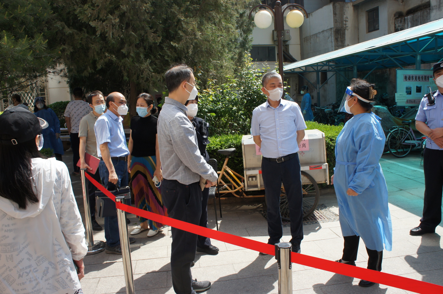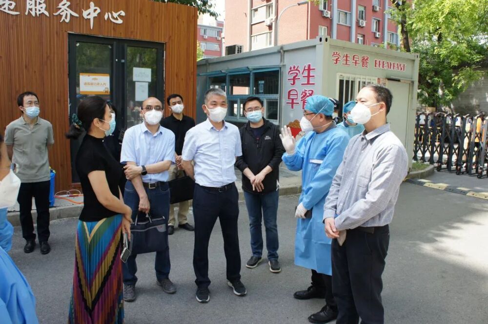 5月4日上午,中共北京市西城区委常委、政法委书记缪剑虹,西城区区委教育工作委员会一级调研员黄国平等来永利督导检查核酸检测和疫情防控工作落实情况,永利副校长柯扬陪同检查。