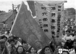 下:1947年在佳木斯,与东北文艺界各团体负责人合影。从左至右:何士德、李之华、任虹、张庚、吴雪、吕骥、塞克、舒群