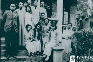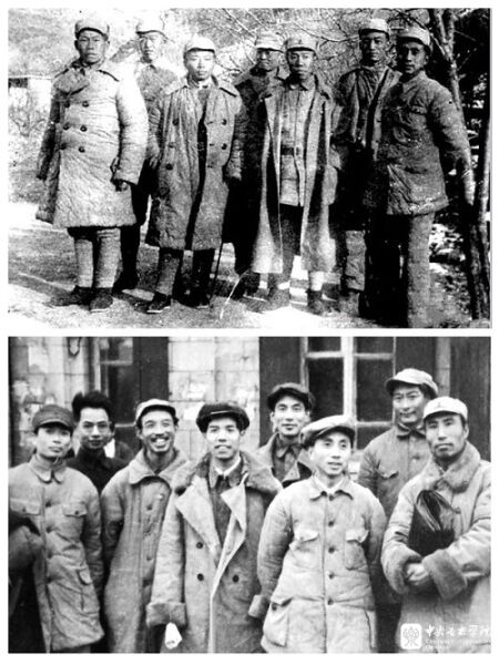 上:1939年与华北联合大学同事一起在河北平山合影。右起:吕骥、江隆基、成仿吾、何干之、朱改、申力生、李凡夫