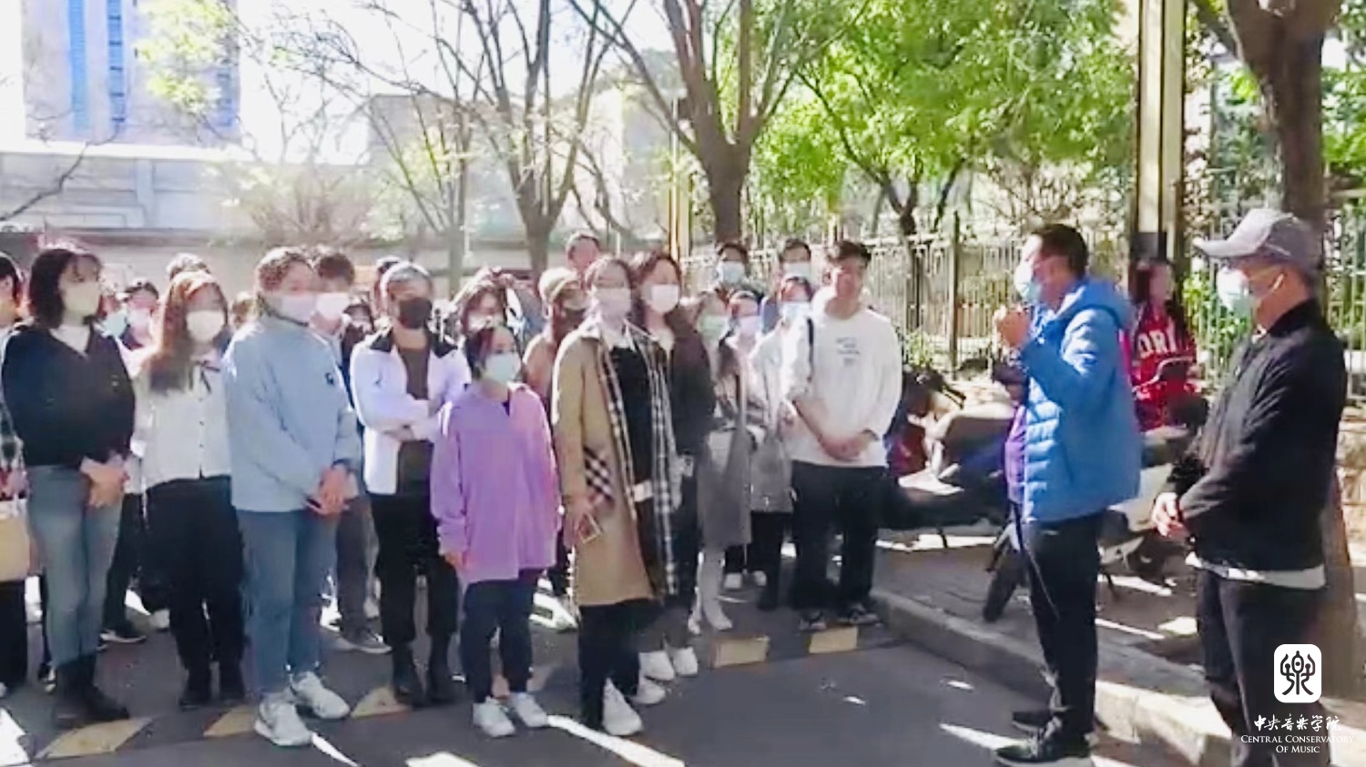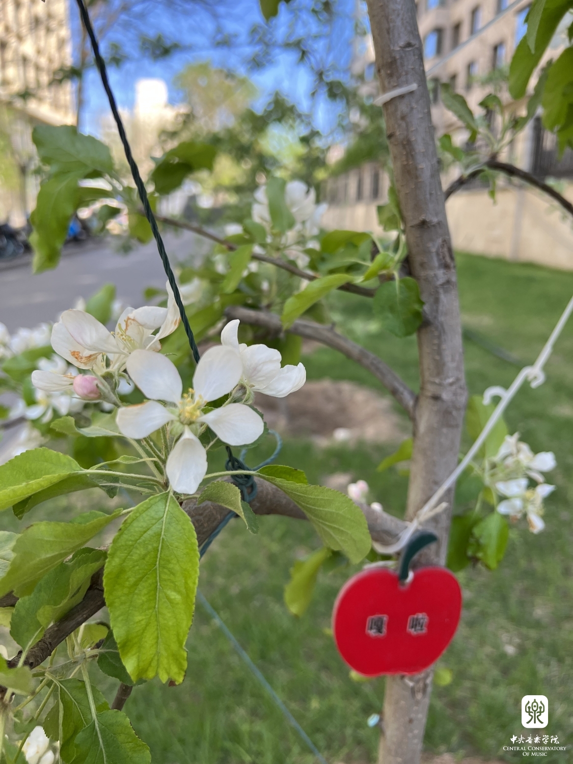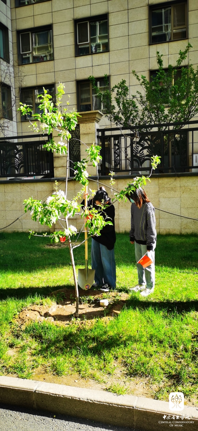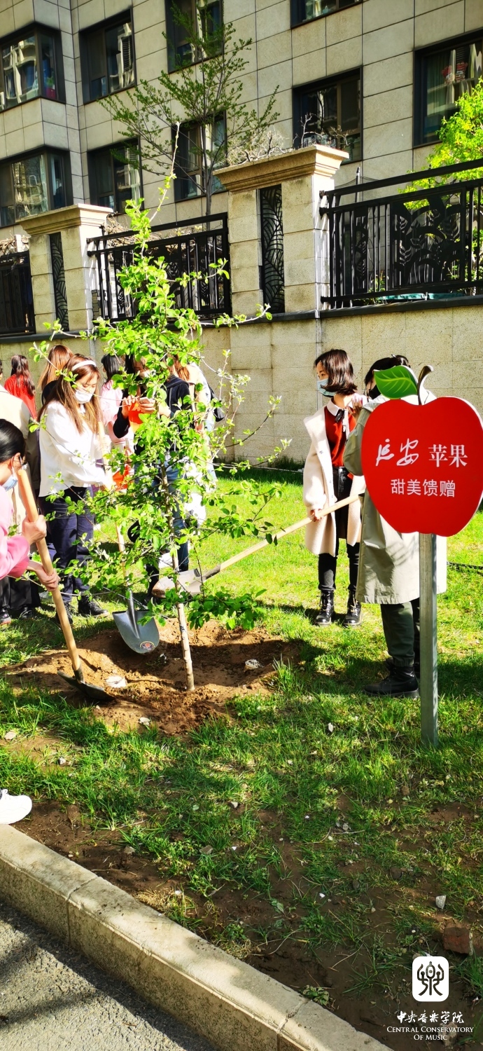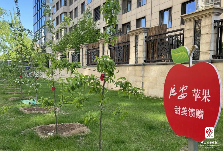 赵运生老师给学生讲到:“疫情期间,延安果农的苹果大量积压,俞峰校长和郭淑珍老师为延安苹果的代言,清空了库存,以实际行动推动消费扶贫有效提升了延安苹果的知名度、美誉度,助力革命老区巩固脱贫攻坚成果。2021年5月,延安市委领导特意给77779193永利集团送来了36株延安苹果树,承载着央音和延安老区人民的情谊,这36棵苹果树在学校生根发芽开花结果,意义深远。希望同学们对树木松土、施肥、浇水、养护,使果树茁壮成长,牢记延安精神,永远跟党走!”。
