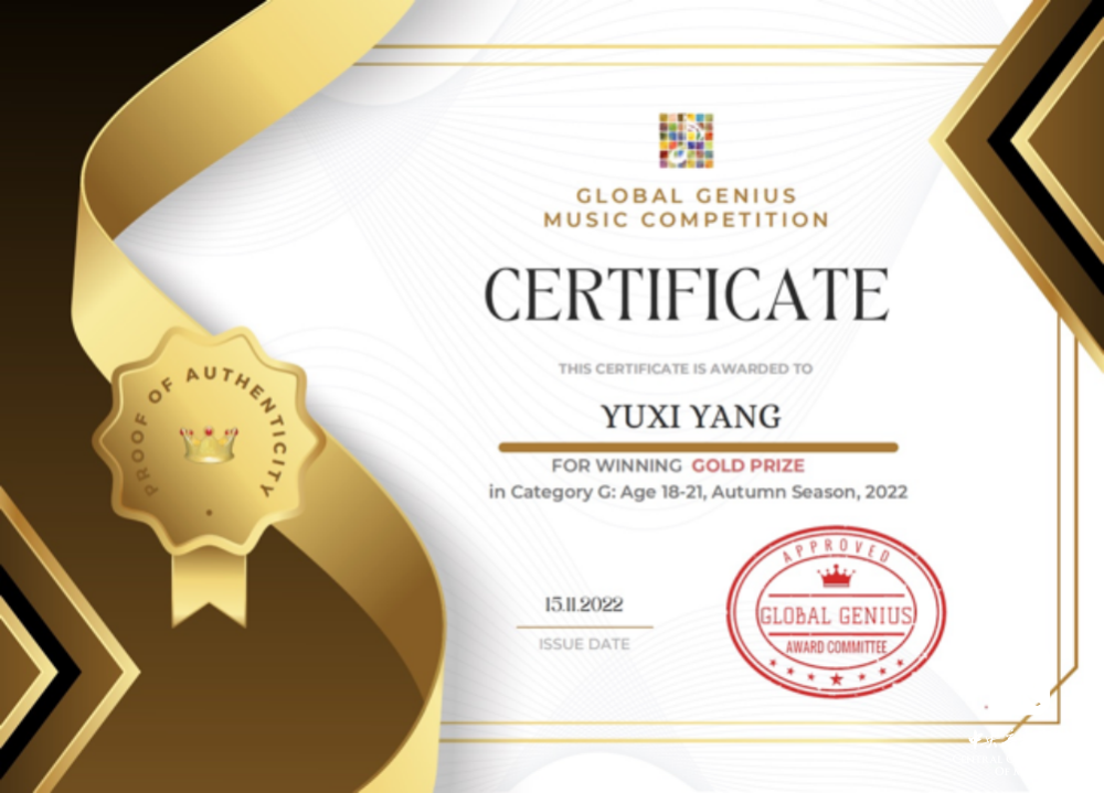 2022年11月20日,英国全球天才音乐大赛-秋季比赛“Global Genius 2022 Autumn Season”公布获奖名单。