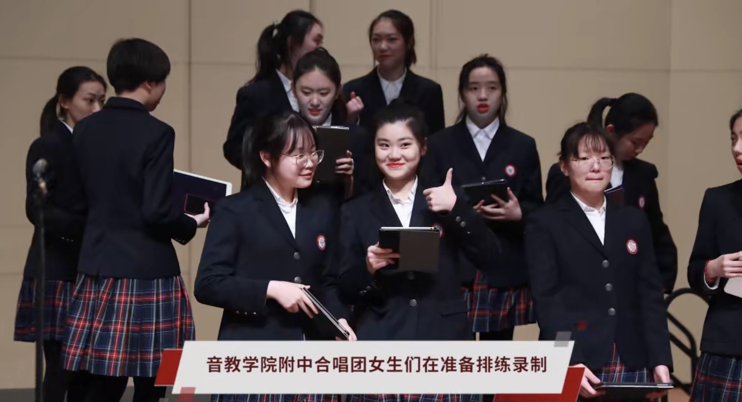 CYG:这个项目完全是在组织部的统筹下完成的,各个部门都予以了极大支持,包括我们附中音教合唱团的孩子,要从附中专门来大学排练录制。当时刚好是期末放假前,大家都非常忙碌,但对于排练没有一丝懈怠,反而更加用心。排练和录制的过程中,所有参与人员都无私地奉献了百分之百的精力和努力,大家也在此过程中收获良多。