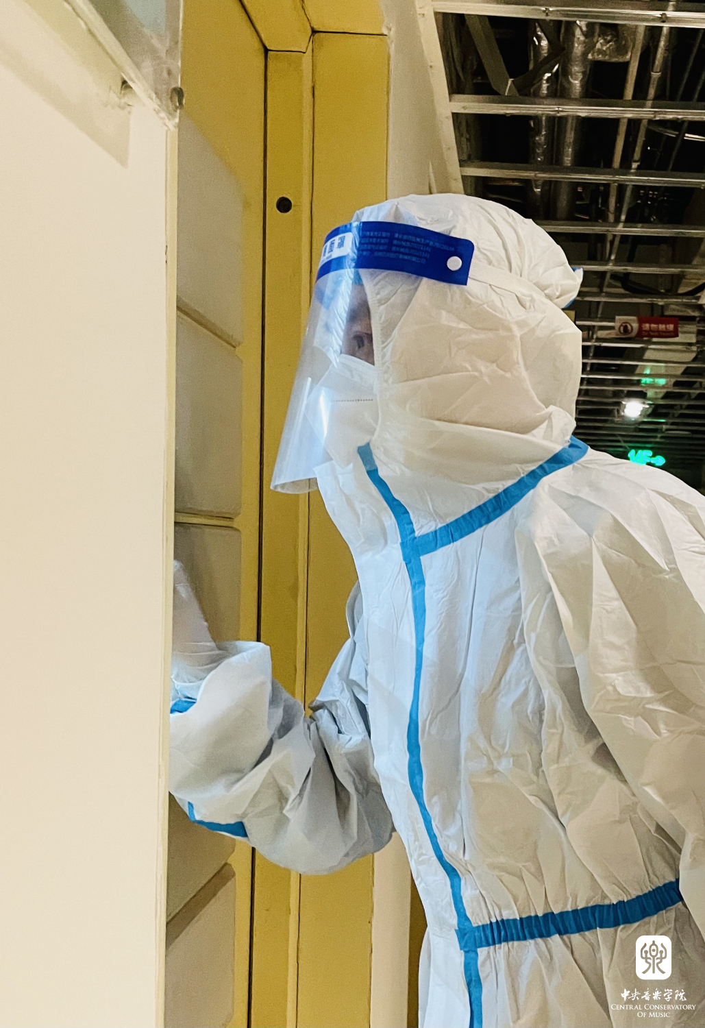 十一月中旬以来,学校的每一次疫情通报都深深牵动着每个央音人的心!作为一名党员,也是一名基层支部书记,在学校需要的时候能够出一份微薄之力,是责无旁贷的!入校之后,虽然工作琐碎辛苦,穿上“大白”五六个小时不能喝水、上厕所,但是能把学校对学生们的关爱通过我们的劳动传递到每个同学的心中。同学们的每一个要求,学校都积极回应、尽力满足。在看到他们在群里写下满屏的“谢谢老师”时,觉得一切都值得!