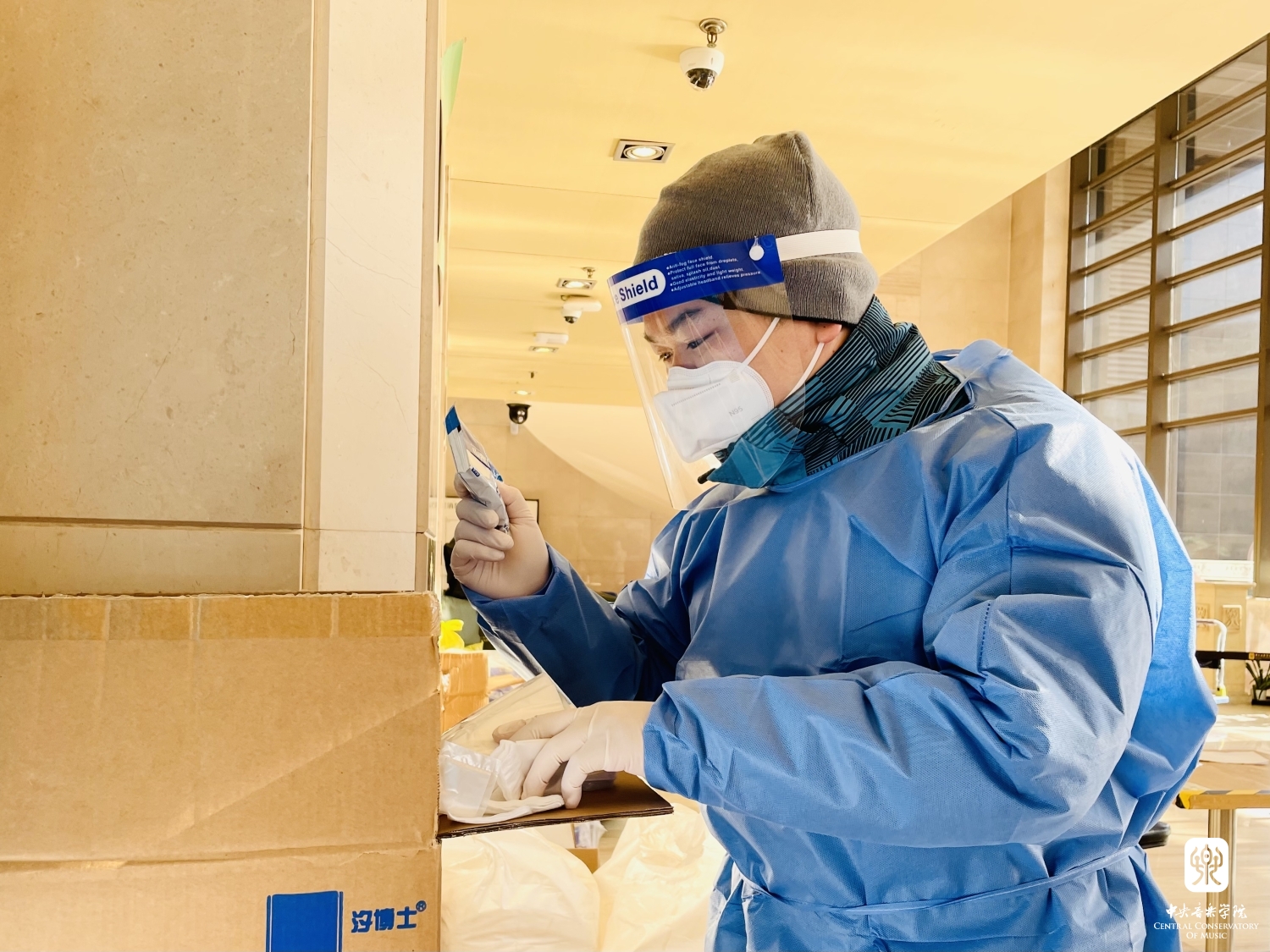 很荣幸能够作为教师志愿者为学院抗疫贡献自己的绵薄力量。进到校园才发觉,抗疫工作是有多么的繁重,抗疫一线的领导和老师们细心呵护每一位央音同学的周全,工作量大的惊人,很多领导、老师以及后勤工作人员已经几天没合眼。作为一名央音的青年教师党员,我有义务且责无旁贷,应该奋斗在学校最需要的地方。
