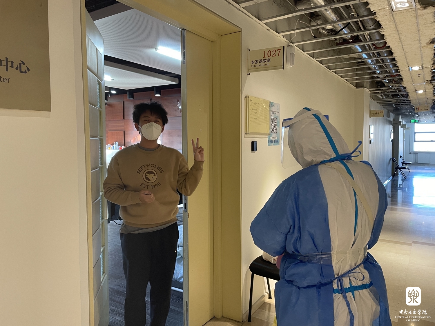 与我们并肩作战的不止是身边给力的队友,还有懂事贴心的同学们,“老师,我知道其他同学有更重要的东西需要您帮助,我的东西可以先不取了”、“老师,我的乐器有点重,就不麻烦您背出来了,我可以自己想办法解决”、“老师你们做好防护,安全第一”…爱与被爱在央音校园内同频共振。