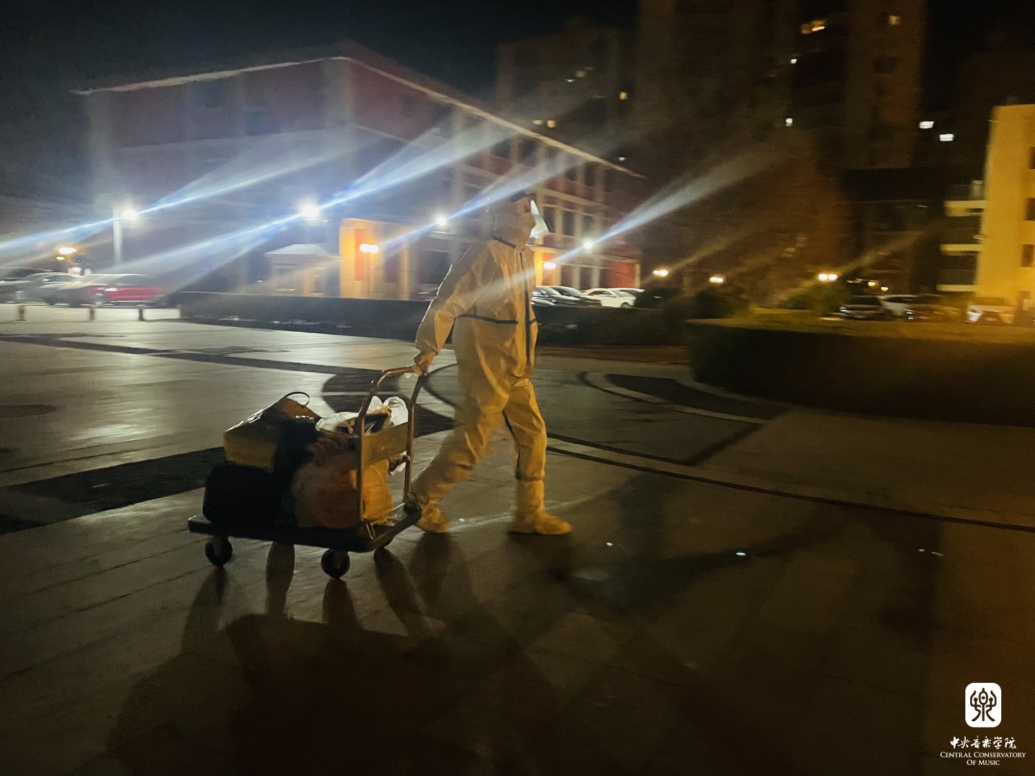 作为一名党员教师,教书育人是我的工作,危难时刻挺身而出是我的责任。了解到女本宿舍楼急需支援,我迅速反应,与几位教师志愿者们共同构筑起宿舍防疫堡垒,为学生配送三餐、分发快递、运送生活物资、取送乐器、环境消杀,做好学生心理关怀和离校登记,全力保障大家的学习生活有序进行。同学们一声声由衷的感谢、一张张健康开朗的笑脸抚慰了志愿者们疲惫的身体,更让我感到在团结勇毅的央音人面前,没有什么是不可战胜的。功不唐捐,玉汝于成,期待我们在疫情散去春暖花开的校园,迎接最美好的相聚。