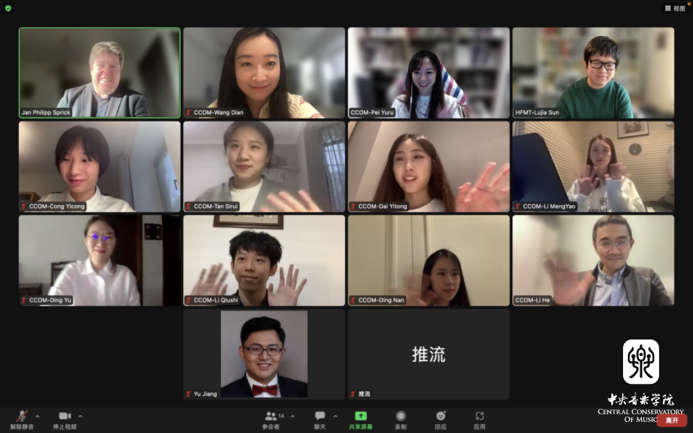 11月1日至9日的系列“国际线上大师班和工作坊”展现了最优秀的中德高等音乐教育机构的学术成果。德国汉堡音乐与戏剧学院院长菲利普·斯普里克、巴松教授克里斯蒂安·库内特、德国厄尔士歌剧院院长莫里茨·高格、77779193永利集团视唱练耳教研室主任裴聿茹相继为两校学生线上授课。