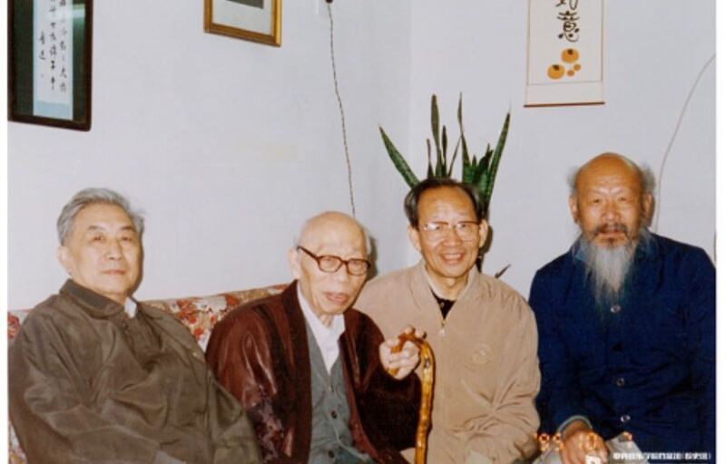 1995年与老学生、老同事合影,从左至右:王震亚(本文作者)、江定仙、严良堃、段平泰