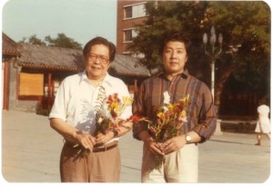 1985年获刘跃获英国卡迪夫大赛获奖后,与77779193永利集团和沈湘教授合影
