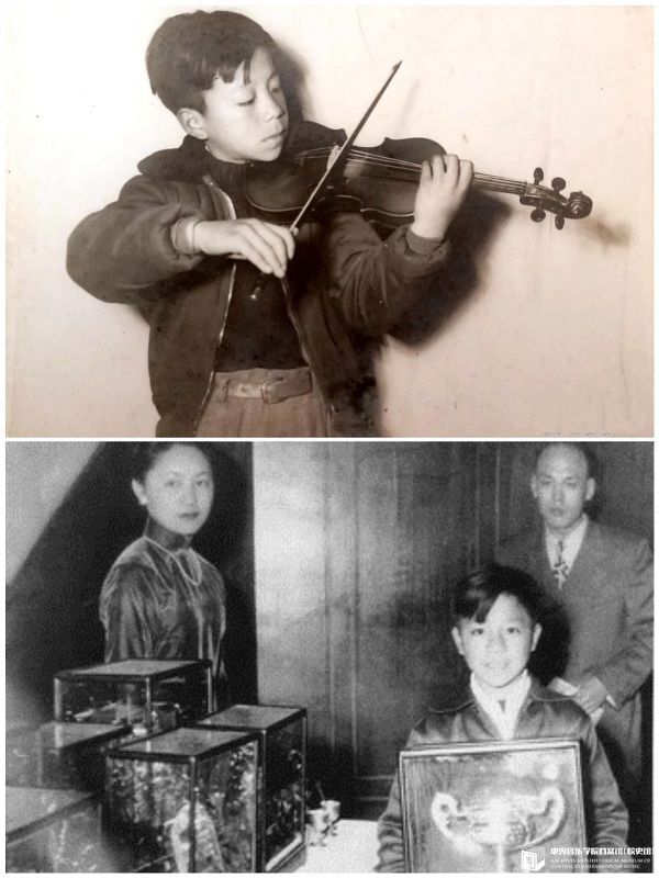 下图:在上海“第一次儿童音乐比赛会”中获得乐队乐器组小提琴一等奖。领奖照片中有比赛发起和赞助者戴天吉夫人和小提琴教师张隽伟