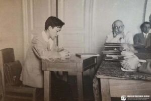 1947年,在南京国立音乐院礼堂排练维瓦尔第《a小调小提琴协奏曲》,照片由美国新闻处记者拍摄