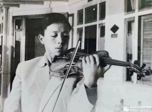 入学之后,学校根据我的条件,让我跟随盛天洞(新中国成立后改名为盛雪)老师学习小提琴。盛老师的教学以认真、严谨而著称,尤其对演奏姿势和音准等问题要求严格。在他的指导下我进步很快,第二年就在南京首次登台独奏维瓦尔第《a小调小提琴协奏曲》(国立音乐院乐队伴奏)。除主科外,幼年班还开设其它一些音乐课(视唱练耳、音乐欣赏等)和文化课,为我们打下了较为扎实、全面的音乐基础。