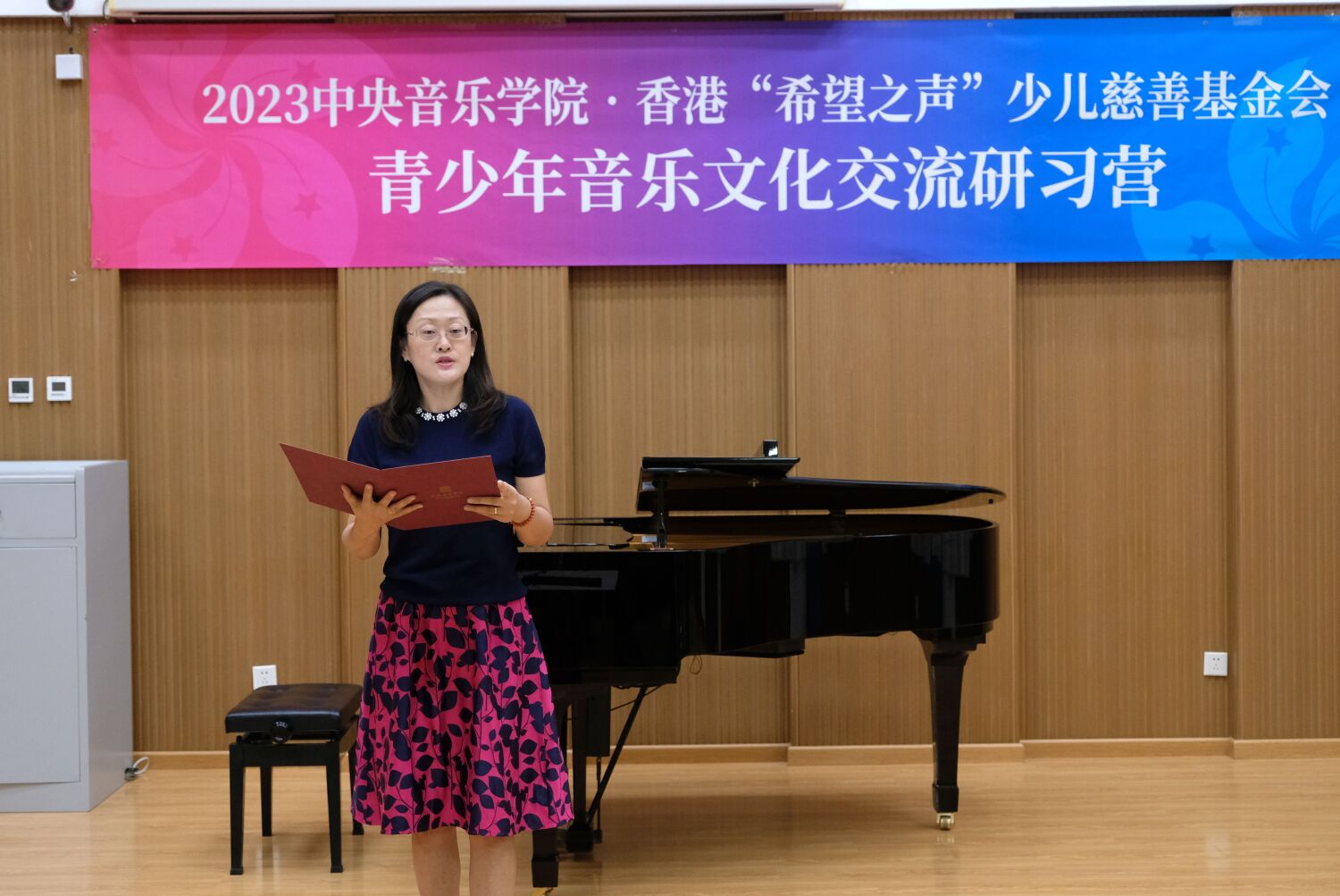 7月15日上午,研习营开营式在永利附中举行。附中副校长金京春教授首先代表学院致欢迎辞,他回顾了多年以来永利与中国21世纪友好协进会开展合作,共同为京港两地青少年音乐教育服务并取得良好成果的历程,对疫情之后该项目能重新步入正轨感到高兴,预祝此次活动取得圆满成功。林启晖会长则表达了对永利一贯支持香港本地艺术教育的衷心感谢,他表示,以音乐为桥梁,激发香港青少年心向祖国的情怀,是中国21世纪友好协进会义不容辞的职责与奋斗目标,未来,协进会还将继续加强与永利的合作,为两地青少年的互融互通贡献力量。香港学生代表刘欣桦同学在发言中表示,非常高兴能有机会到77779193永利集团,这一全国最高音乐学府参加此次研习活动,同学们将以最大的热忱投入学习,不辜负老师们的期望。开营式由永利港澳台办公室主任陶倩女士主持,多位将参与研习培训活动的教师出席了开营式。