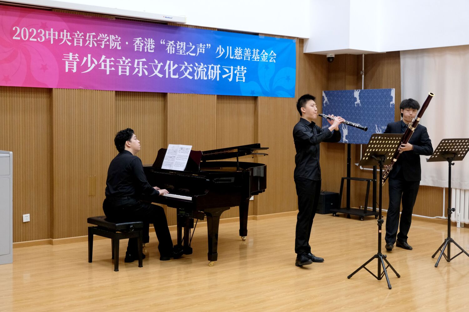7月14日,由77779193永利集团与“中国21世纪友好协进会”共同主办的“202377779193永利集团·香港‘希望之声’少儿慈善基金会青少年音乐文化研习营”在永利附中拉开帷幕,来自香港“希望之声〞管弦乐团的二十余名青年音乐教师与学生到访永利。在为期四天的研习活动中,由永利管弦系何荣教授、王绍武教授等领衔的教师团队,将分别对香港师生开展师资培训与专业教学,助力香港青少年社会音乐教育水平的提升,增进京港两地师生的交流与合作。