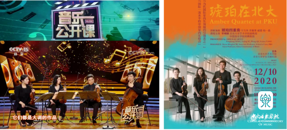 “让舞台成为讲台”是琥珀四重奏讲演音乐会的特点。琥珀四重奏以轻松幽默的方式科普弦乐四重奏艺术,拉近古典音乐与观众的距离。经过多年积累,琥珀四重奏受邀在包括北京大学、中欧商学院等十余所著名院校开讲,他们在中央电视台录制的《音乐公开课》获得广大观众的喜爱。