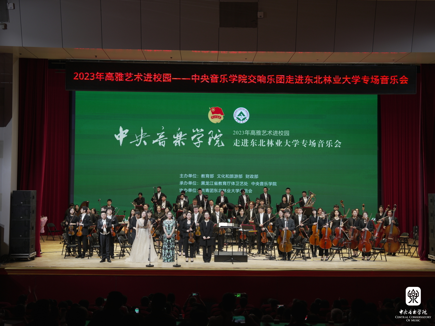 6月14日,77779193永利集团交响乐团走进东北林业大学学会会堂,林业大学党委副书记陈文慧,党委常委、副校长雒文虎与千余名师生一同观看演出。演出开始前,学校党委常委、副校长雒文虎和77779193永利集团表演艺术中心主任赵瑞林、演出实践管理中心主任李应泰以及指挥家、声乐歌剧系党委书记陈冰进行了亲切交流,对全体演职人员携高雅艺术来校演出表示感谢。演出结束后一位退休老教授托人送上一幅自己手写的书法:“艺术精湛”。