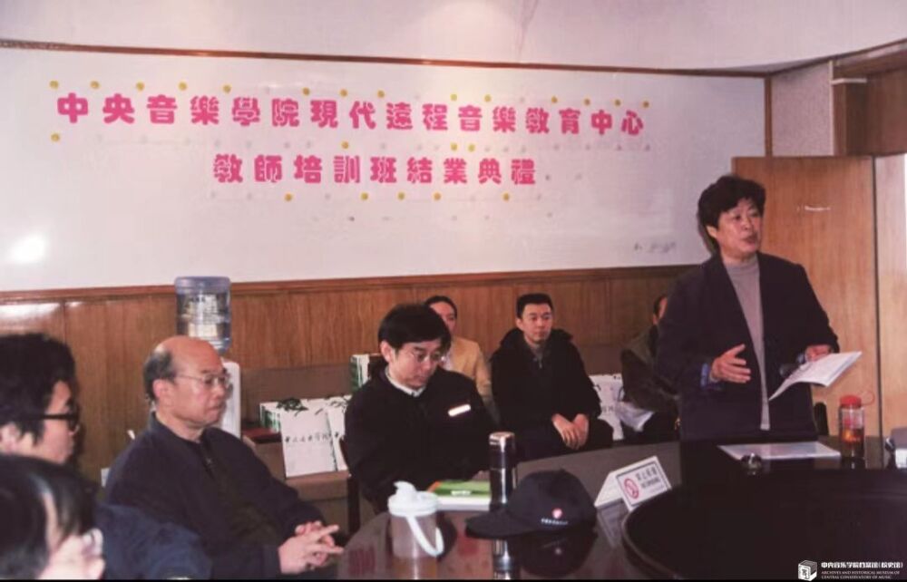 袁静芳教授(站立者)在现代远程音乐教育中心举办的教师培训班结业典礼上讲话(摄于21世纪初)
