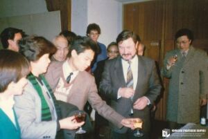 在西柏林参加由当地主办方举办的招待会。前排左2为袁静芳,右1为王国潼