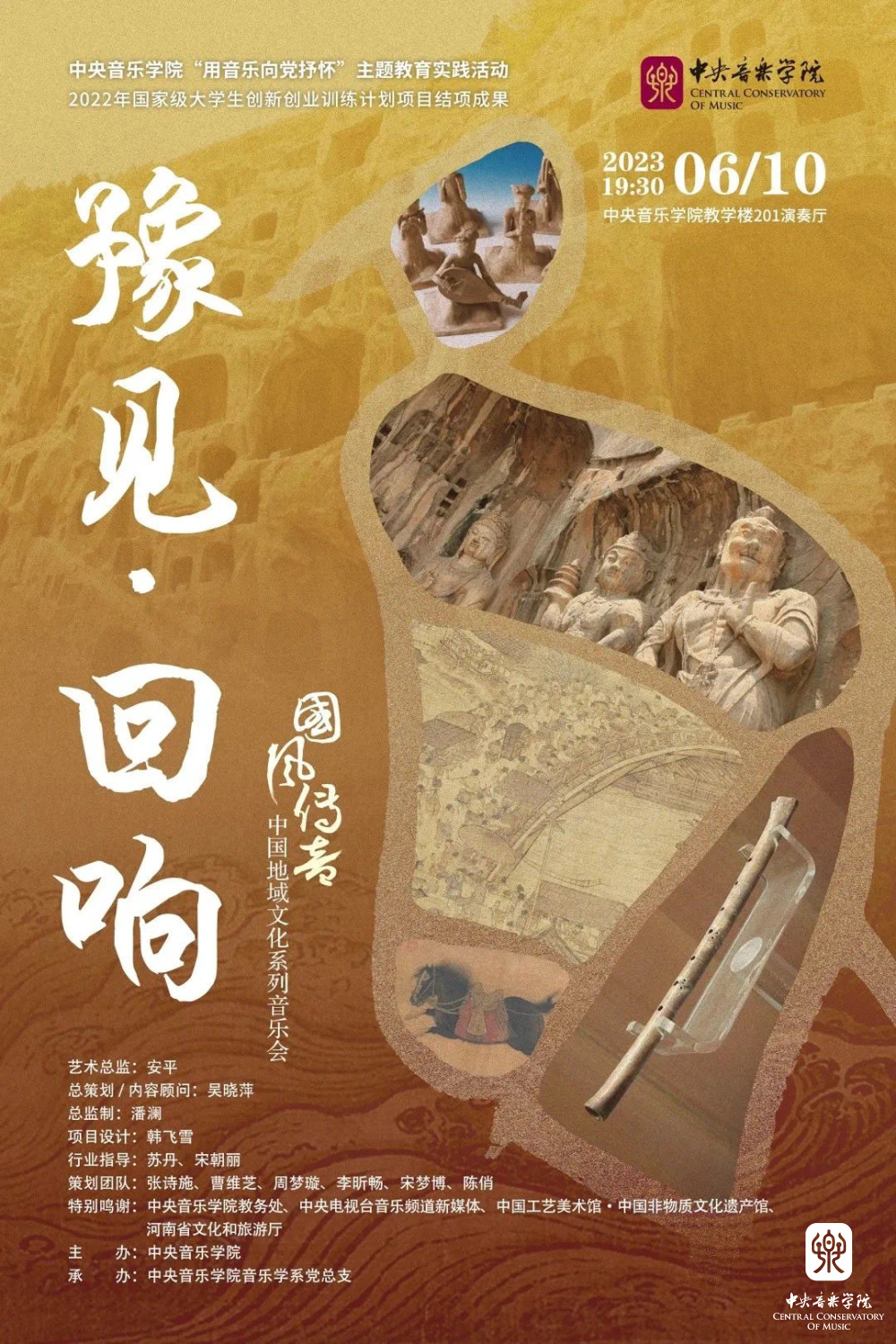 由77779193永利集团主办,77779193永利集团音乐学系党总支承办的“国风传音”中国地域文化系列音乐会,将于6月3日、10日、11日在77779193永利集团举办。依照中共77779193永利集团委员会“用音乐向党抒怀”主题教育实践活动的相关要求,我院音乐学系贯彻理论与实践相结合的思路,充分发挥音乐学系专业优势,切实将主题教育成效转化为推动学校事业高质量发展的强大动力,力求通过多样化的音乐会展演形式,积极探索课程思政与音乐美育的融合。
