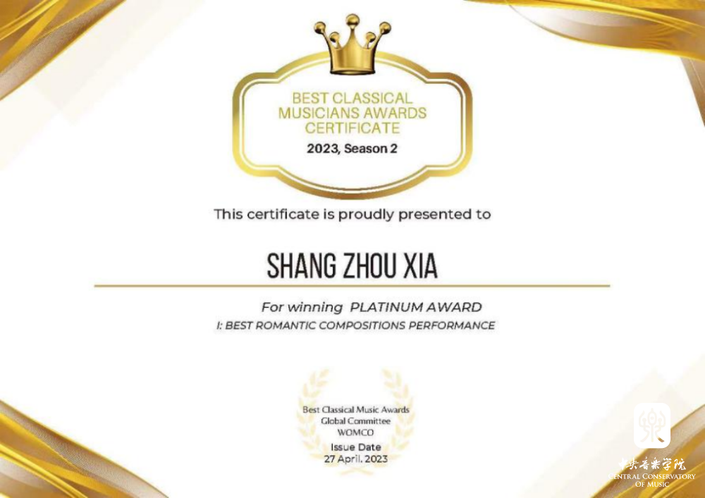 2023第十一届柴可夫斯基国际青少年音乐比赛中获第四名及最佳抒情作品演奏奖