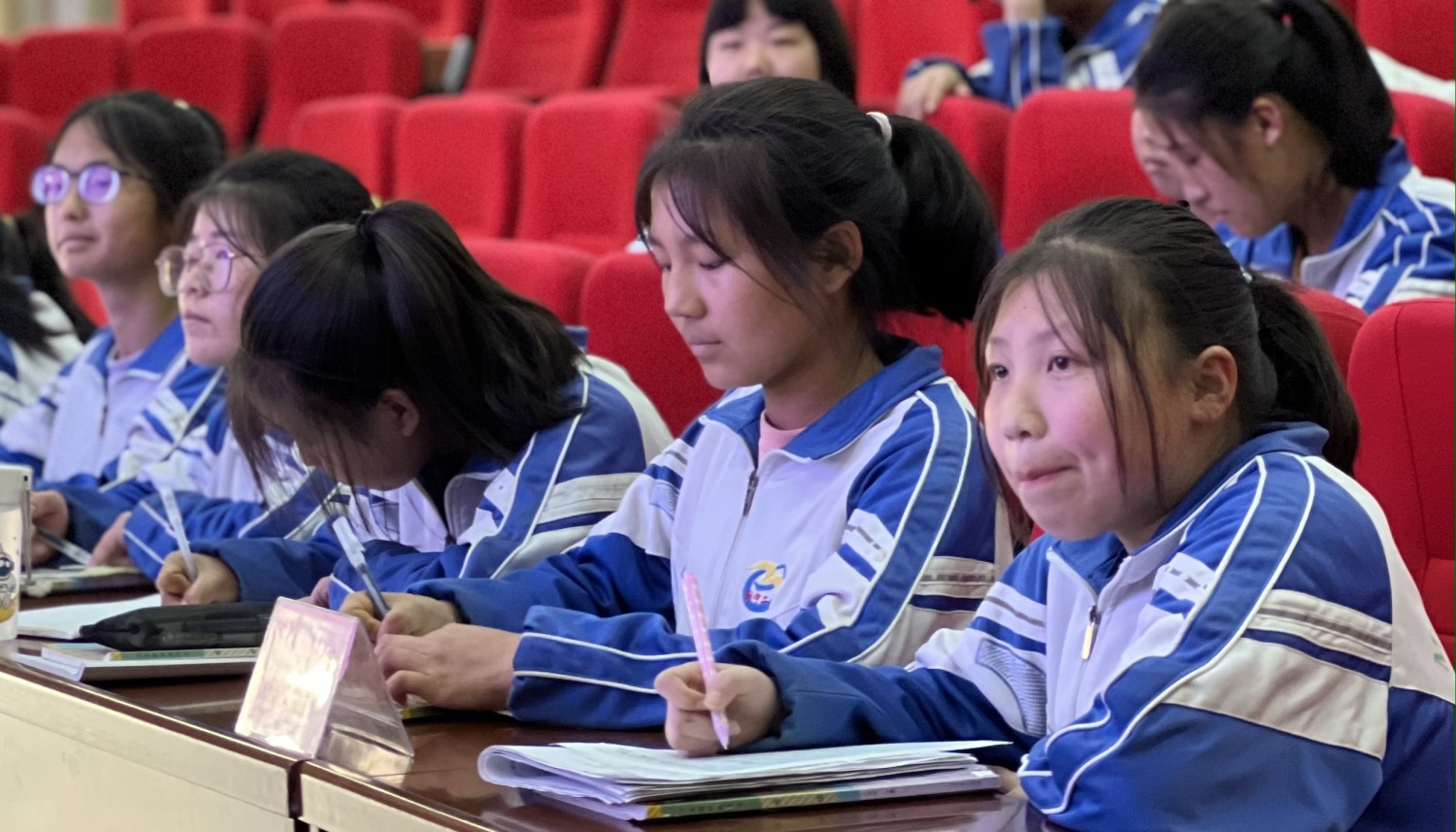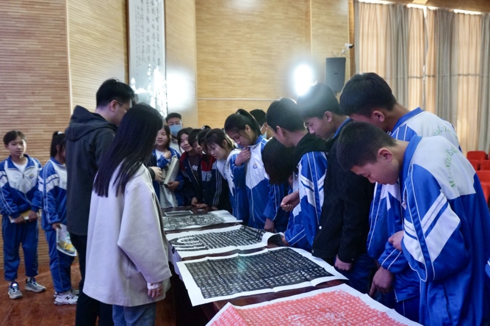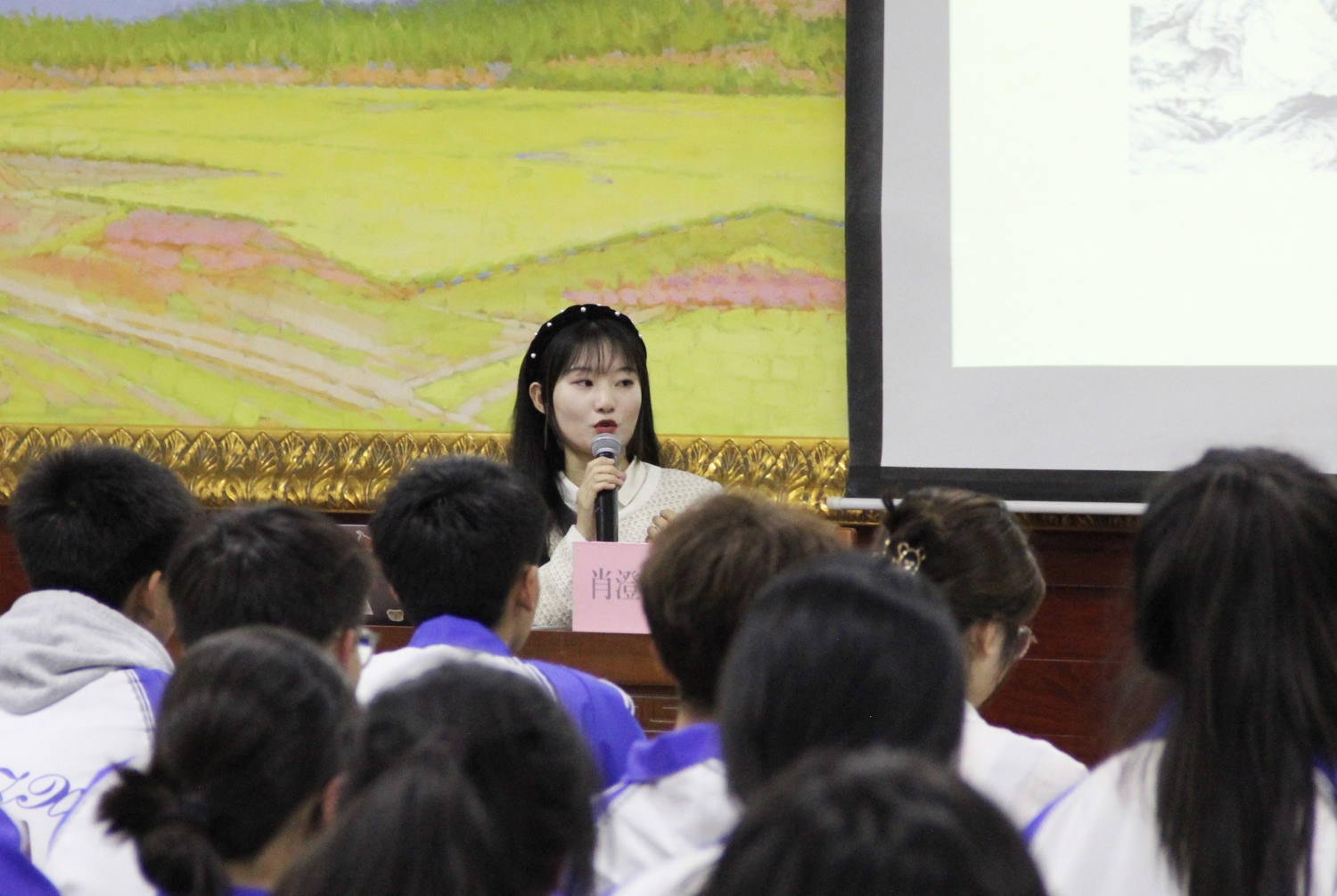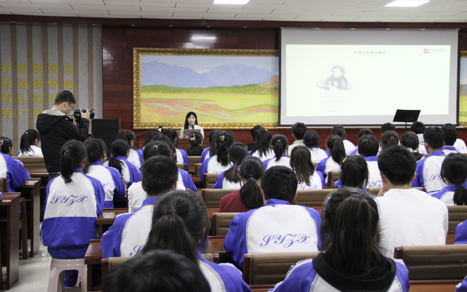 4月27日,为最大程度发挥此次文艺帮扶的效果,宣讲师肖澄迎联合志愿者们走出闽宁镇,来到银川市实验中学,开展“塞上行”文艺宣讲活动,为全校400多名师生带来一场以“高雅艺术进校园——中国艺术歌曲专题”为主题的美育讲座。整场宣讲采用讲演结合的方式,通过分析中国艺术歌曲历史特点与创作风格,融合中国优秀传统文化、爱国、民族繁荣等主题,带领同学们欣赏音乐、诗词之美的同时,筑牢中华民族共同体意识,让优质教育资源辐射到更多当地群众,为宁夏美育教育贡献力量。宣讲现场气氛热烈,活动结束后,同学们主动上前与志愿者老师就主题展开进一步学习讨论。